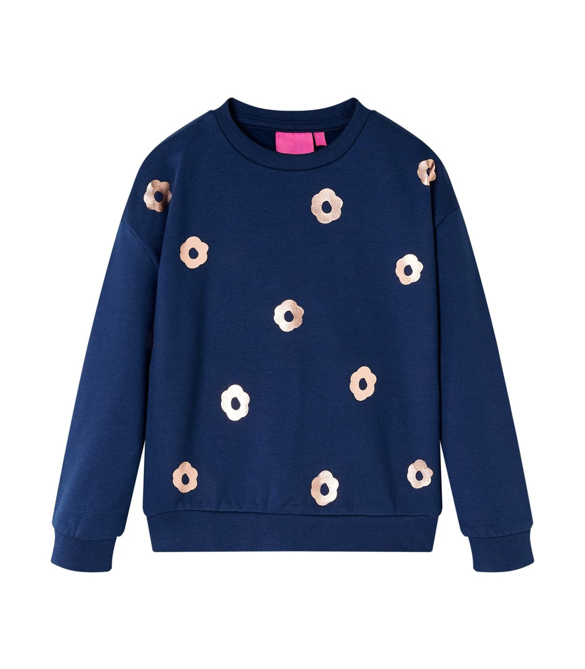 Our children's clothing line is all about affordable, high-quality, and durable everyday wear for kids aged 1.5 to 10. Our range includes jackets, sweaters, shirts, and many more, with a variety in style, size, and colour. Following the high-quality standard in the market, we are using high-grade materials and advanced manufacturing techniques. This kids' sweatshirt has long sleeves, a loose fit, and rib-knit edges at the cuffs and neckline. The kids' top features a beautiful flower front print. The pullover sweatshirt is made of 95% cotton and 5% elastane for comfort and breathability. The soft fleece lining provides extra warmth. Good to know: The size chart in the picture provides measurements for kids aged 1.5 to 10, covering the height, chest, waist, and hip. You can easily find the right fit for your child.