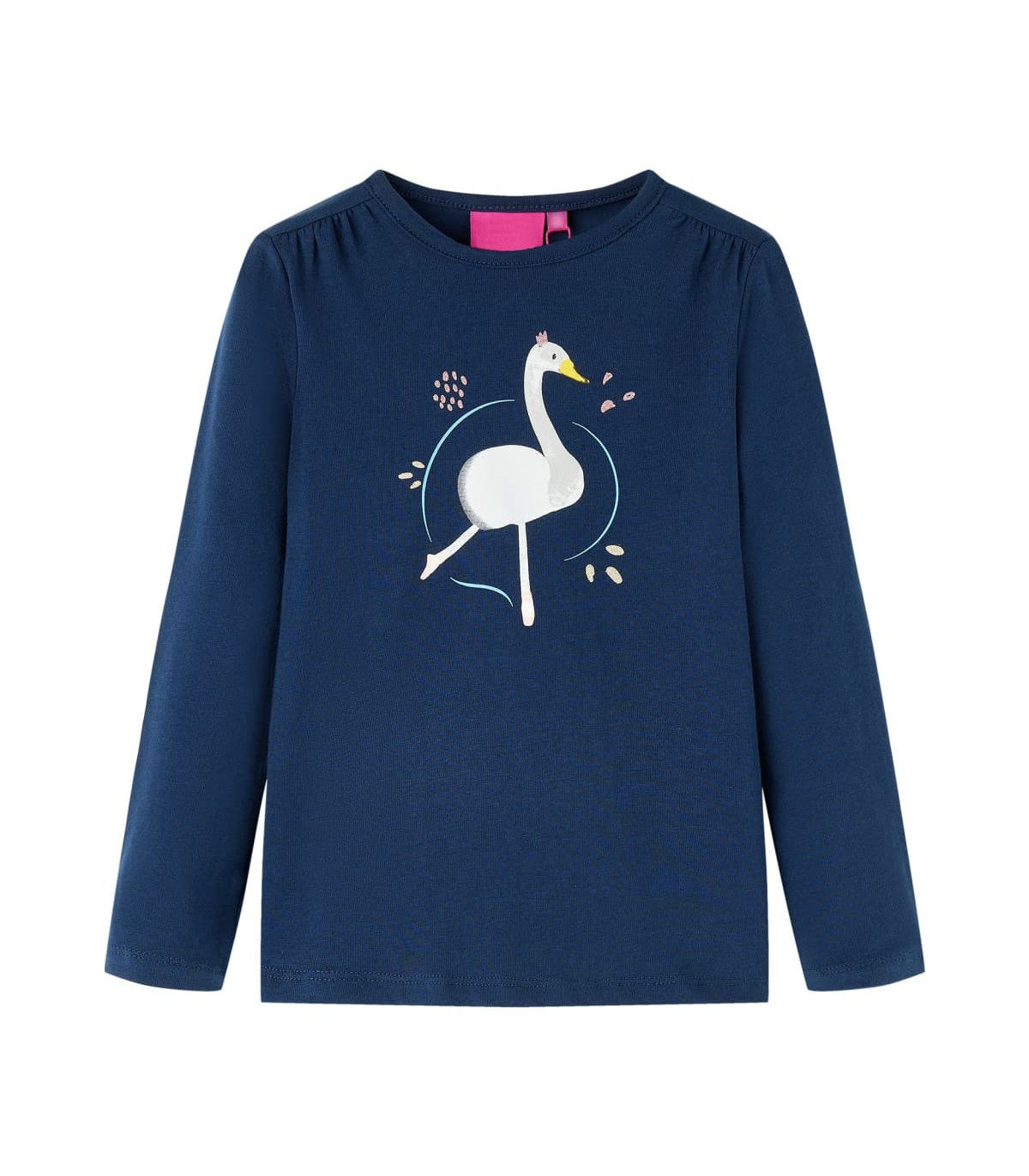 Our children's clothing line is all about affordable, high-quality, and durable everyday wear for kids aged 1.5 to 10. Our range includes jackets, sweaters, shirts, and many more, with a variety in style, size, and colour. Following the high-quality standard in the market, we are using high-grade materials and advanced manufacturing techniques. This kids' t-shirt has long sleeves, a round neckline, and a straight model. The children's t-shirt is printed with a cute dancing swan. The children's long sleeve t-shirt is made from soft material with 95% cotton and 5% elastane for extra comfort and breathability. Good to know: The size chart in the picture provides measurements for kids aged 1.5 to 10, covering the height, chest, waist, and hip. You can easily find the right fit for your child.