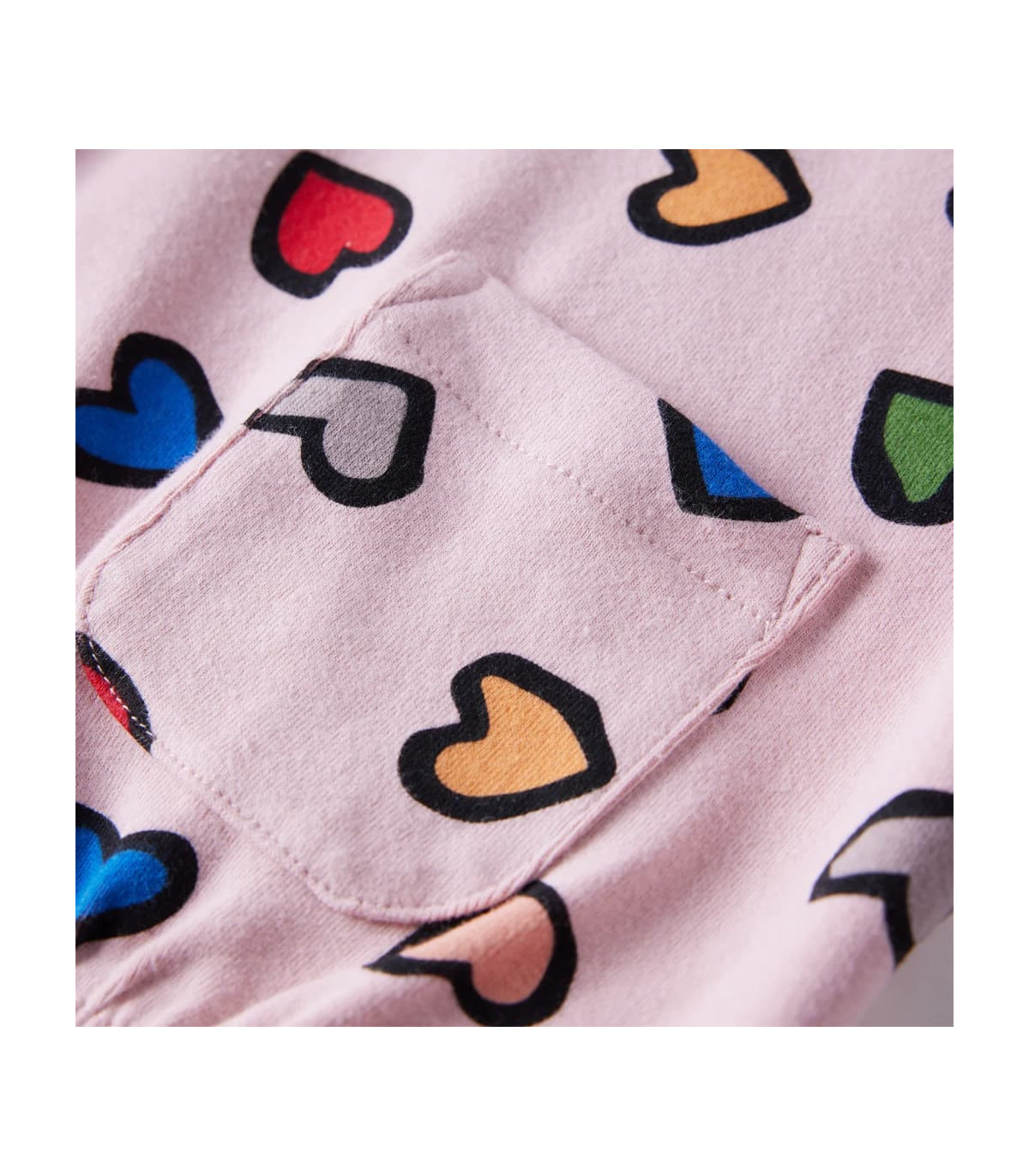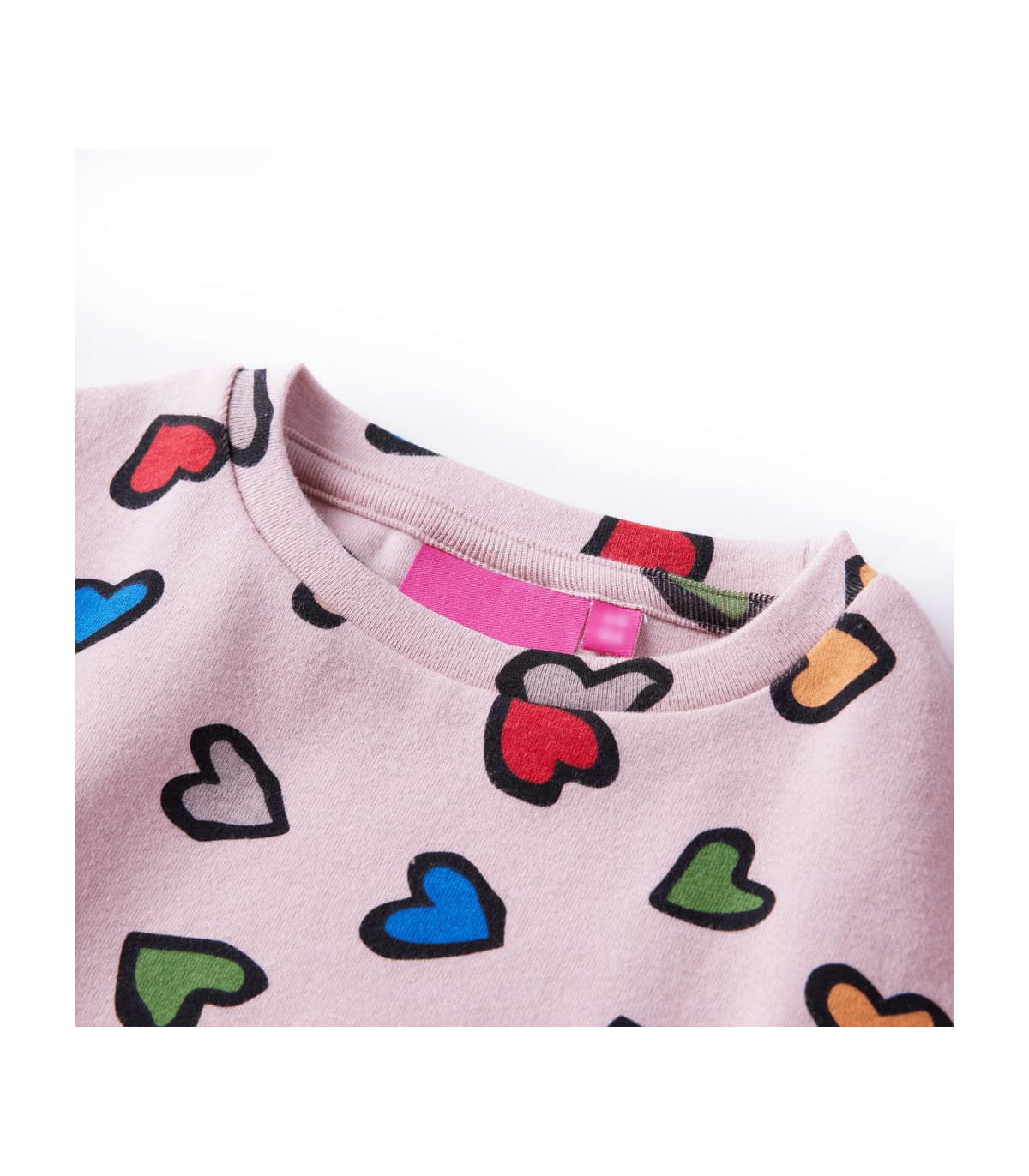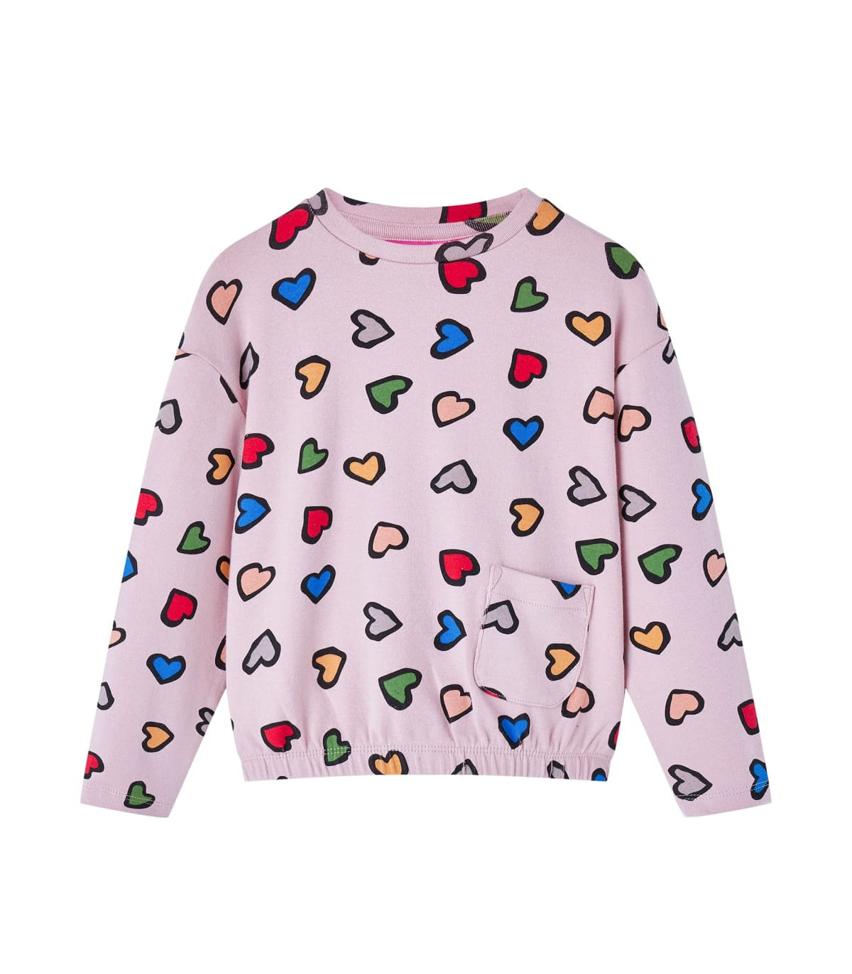 Our children's clothing line is all about affordable, high-quality, and durable everyday wear for kids aged 1.5 to 10. Our range includes jackets, sweaters, shirts, and many more, with a variety in style, size, and colour. Following the high-quality standard in the market, we are using high-grade materials and advanced manufacturing techniques. This kids' sweatshirt has long sleeves, a round neck, and an elasticated hem. This children's sweatshirt features colourful heart print all over and has a small pocket. The kids' top is made of 95% cotton and 5% elastane for comfort and warmth. Good to know: The size chart in the picture provides measurements for kids aged 1.5 to 10, covering the height, chest, waist, and hip. You can easily find the right fit for your child.