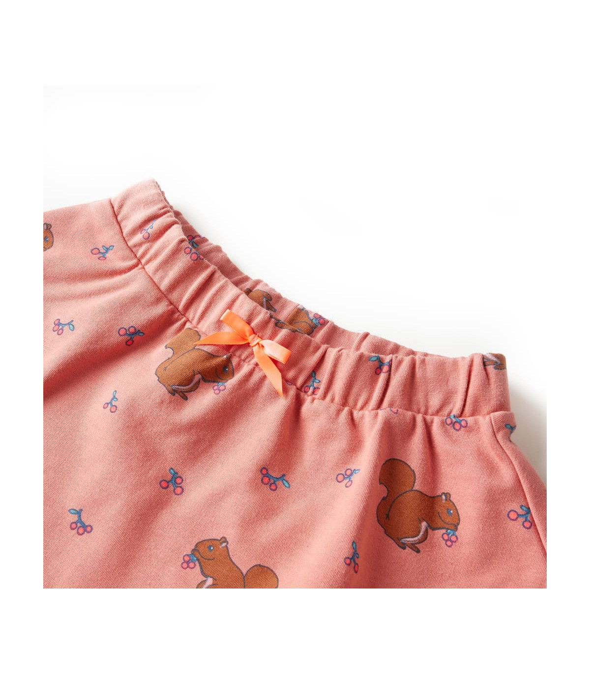 Our children's clothing line is all about affordable, high-quality, and durable everyday wear for kids aged 1.5 to 10. Our range includes jackets, sweaters, shirts, and many more, with a variety in style, size, and colour. Following the high-quality standard in the market, we are using high-grade materials and advanced manufacturing techniques. This kids' skirt has a narrow elastic waistband and a flared hemline. The girl's skirt is printed with squirrels all over. The skirt for girl has a bow on the waist. The children's skirt is made from soft cotton and elastane for comfort and breathability. Good to know: The size chart in the picture provides measurements for kids aged 1.5 to 10, covering the height, chest, waist, and hip. You can easily find the right fit for your child.