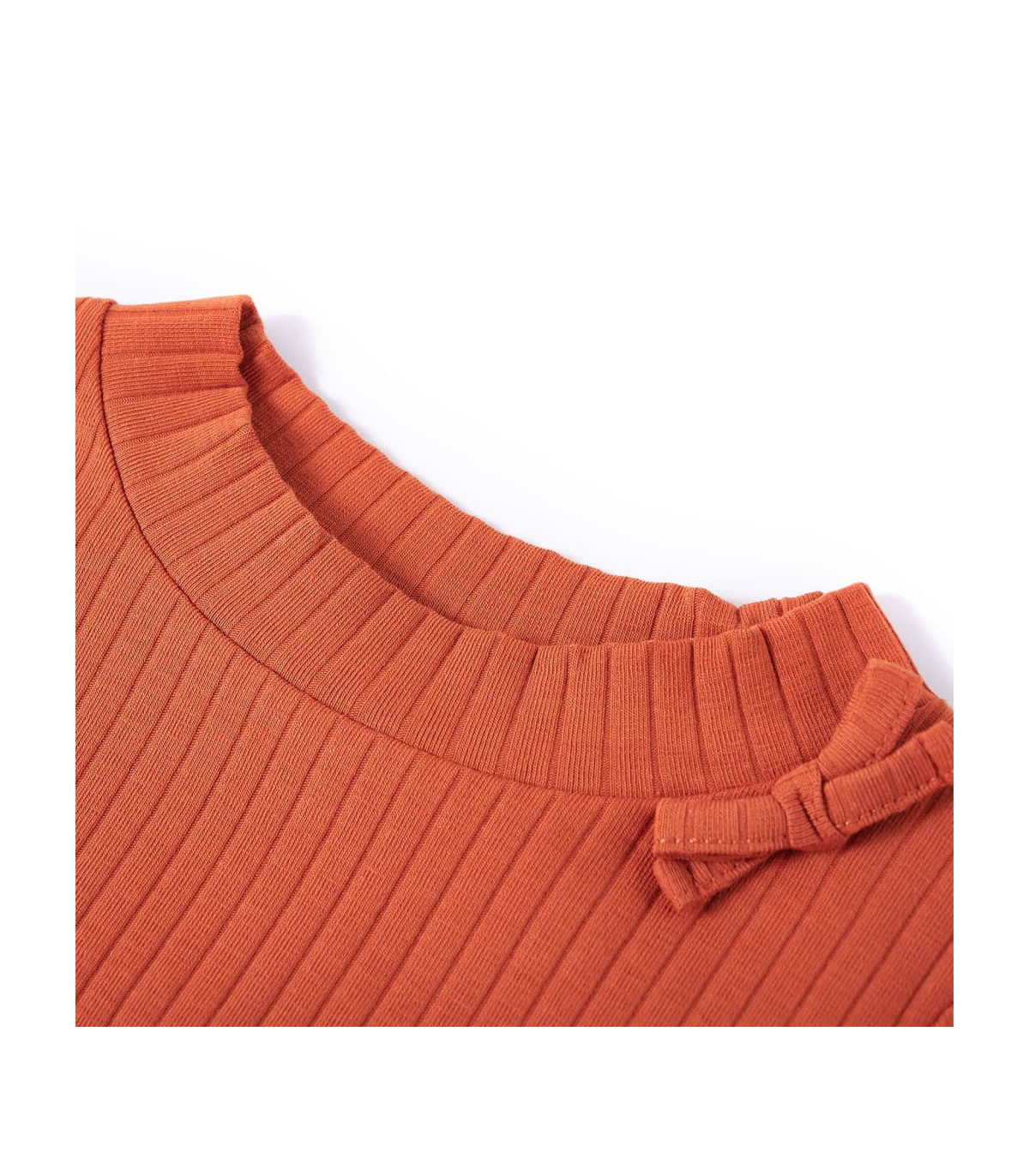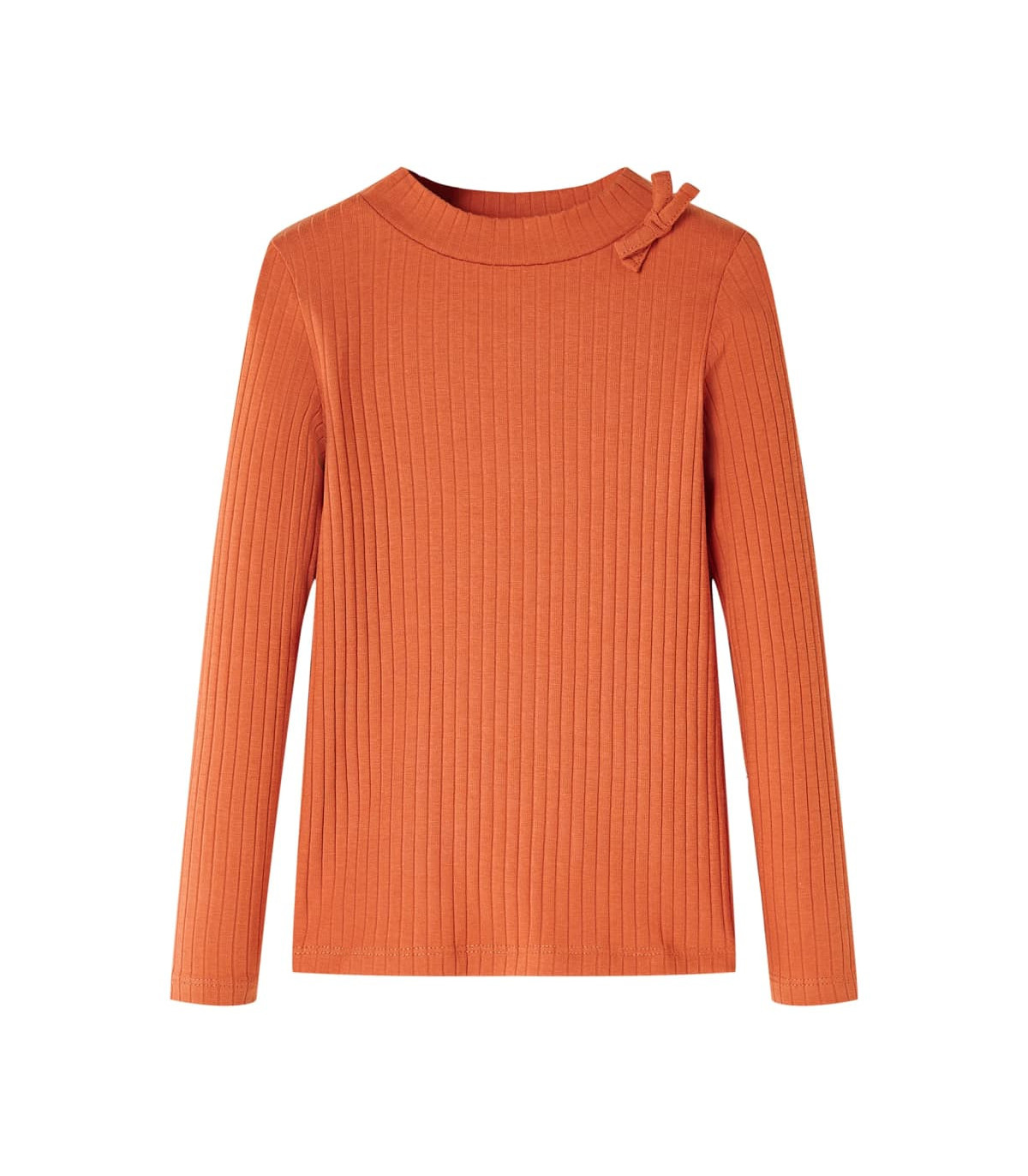 Our children's clothing line is all about affordable, high-quality, and durable everyday wear for kids aged 1.5 to 10. Our range includes jackets, sweaters, shirts, and many more, with a variety in style, size, and colour. Following the high-quality standard in the market, we are using high-grade materials and advanced manufacturing techniques. This kids' t-shirt has long sleeves, a round neckline, and a straight model. This cognac t-shirt features a bowknot decoration. The children's long sleeve t-shirt is made from soft material with 95% cotton and 5% elastane for extra comfort and breathability. Good to know: This size chart in the picture provides measurements for kids aged 1.5 to 10, covering the height, chest, waist, and hip. You can easily find the right fit for your child.