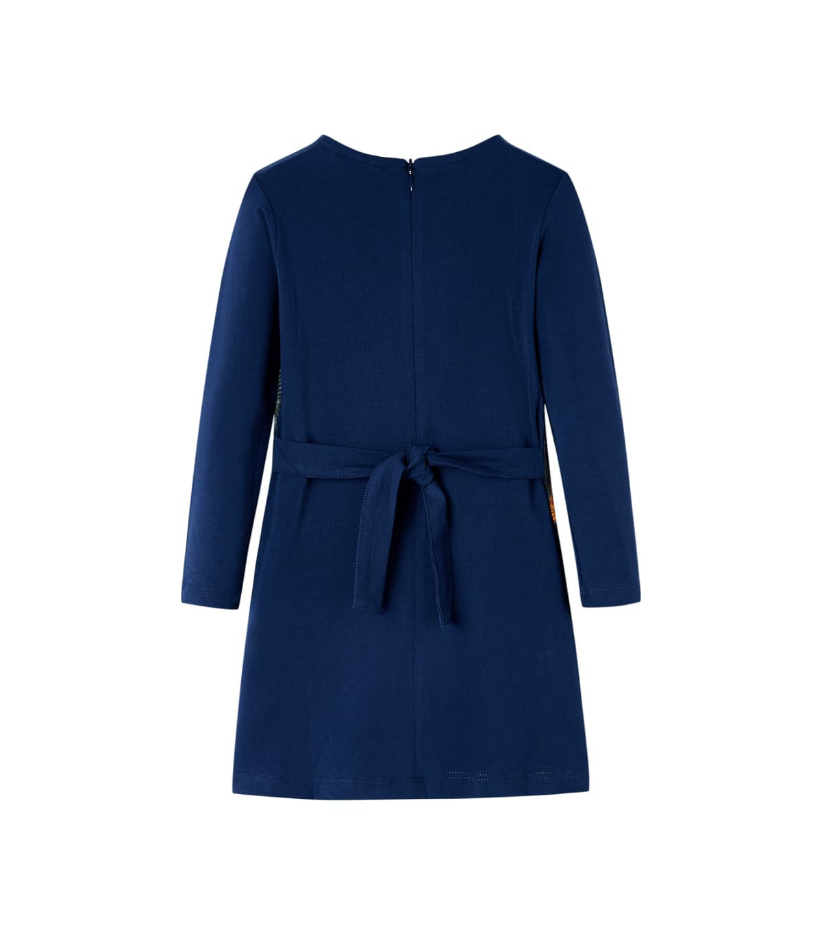 Our children's clothing line is all about affordable, high-quality, and durable everyday wear for kids aged 1.5 to 10. Our range includes jackets, sweaters, shirts, and many more, with a variety in style, size, and colour. Following the high-quality standard in the market, we are using high-grade materials and advanced manufacturing techniques. This kids' dress has long sleeves, a round neckline, and closes with a zipper at the back. This navy children's dress features a lovely cat print. The kids' short dress is made from soft material that includes cotton, and elastane for comfort and breathability. Good to know: This size chart in the picture provides measurements for kids aged 1.5 to 10, covering the height, chest, waist, and hip. You can easily find the right fit for your child.
