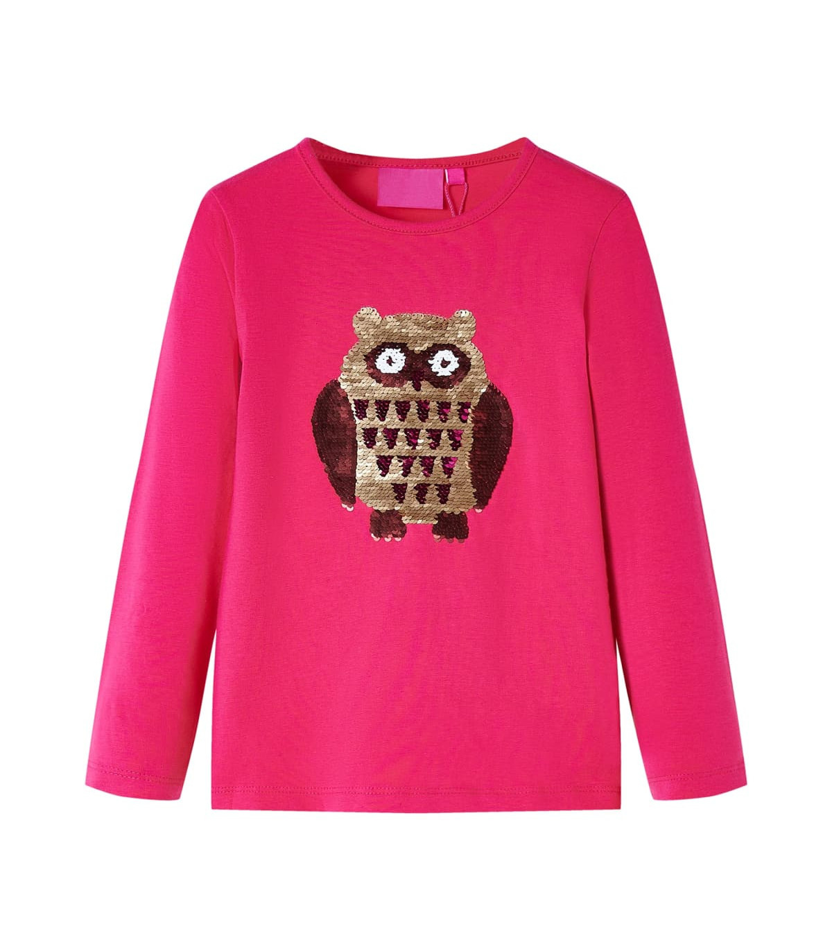 Our children's clothing line is all about affordable, high-quality, and durable everyday wear for kids aged 1.5 to 10. Our range includes jackets, sweaters, shirts, and many more, with a variety in style, size, and colour. Following the high-quality standard in the market, we are using high-grade materials and advanced manufacturing techniques. This kids' t-shirt has long sleeves, a round neckline, and a straight model. This bright pink t-shirt features a large, special owl. The children's long sleeve t-shirt is made from soft material with 95% cotton and 5% elastane for extra comfort and breathability. Good to know: This size chart in the picture provides measurements for kids aged 1.5 to 10, covering the height, chest, waist, and hip. You can easily find the right fit for your child.