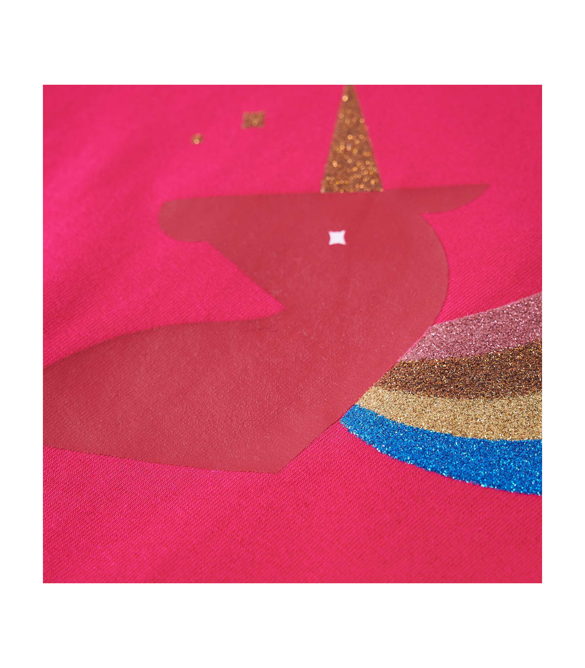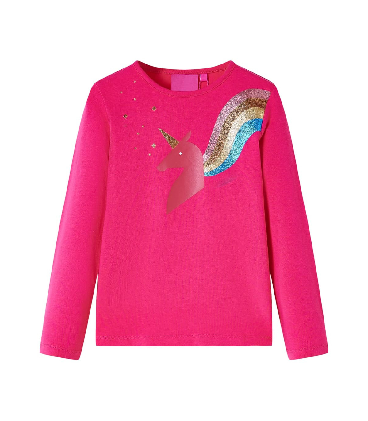 Our children's clothing line is all about affordable, high-quality, and durable everyday wear for kids aged 1.5 to 10. Our range includes jackets, sweaters, shirts, and many more, with a variety in style, size, and colour. Following the high-quality standard in the market, we are using high-grade materials and advanced manufacturing techniques. This kids' t-shirt has long sleeves, a round neckline, and a straight model. This t-shirt features a large, glittering unicorn. The children's long sleeve t-shirt is made from soft material with 95% cotton and 5% elastane for extra comfort and breathability. Good to know: The size chart in the picture provides measurements for kids aged 1.5 to 10, covering the height, chest, waist, and hip. You can easily find the right fit for your child.