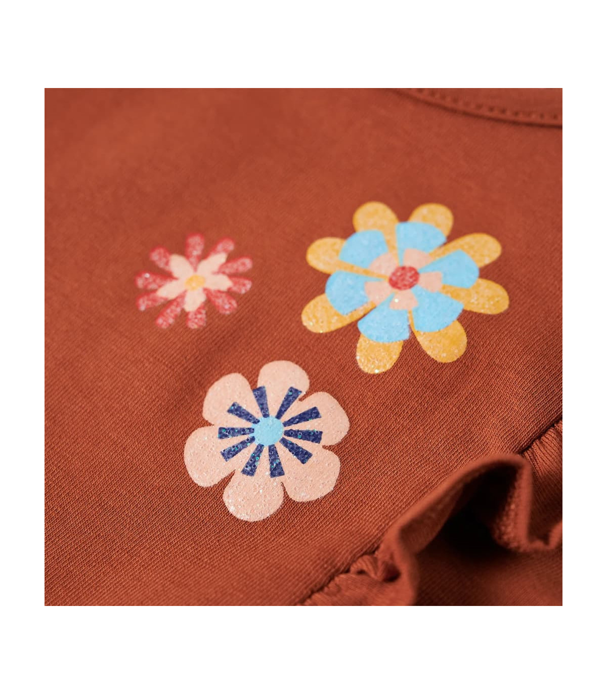 Our children's clothing line is all about affordable, high-quality, and durable everyday wear for kids aged 1.5 to 10. Our range includes jackets, sweaters, shirts, and many more, with a variety in style, size, and colour. Following the high-quality standard in the market, we are using high-grade materials and advanced manufacturing techniques. This kids' t-shirt has long sleeves, a round neckline, and a straight model. The children's t-shirt is printed with flowers and designed with nice ruffles. The children's long sleeve t-shirt is made from soft material with 95% cotton and 5% elastane for extra comfort and breathability. Good to know: The size chart in the picture provides measurements for kids aged 1.5 to 10, covering the height, chest, waist, and hip. You can easily find the right fit for your child.