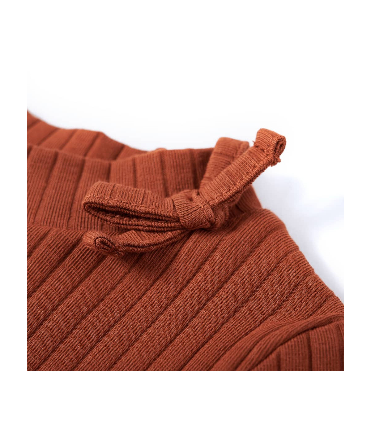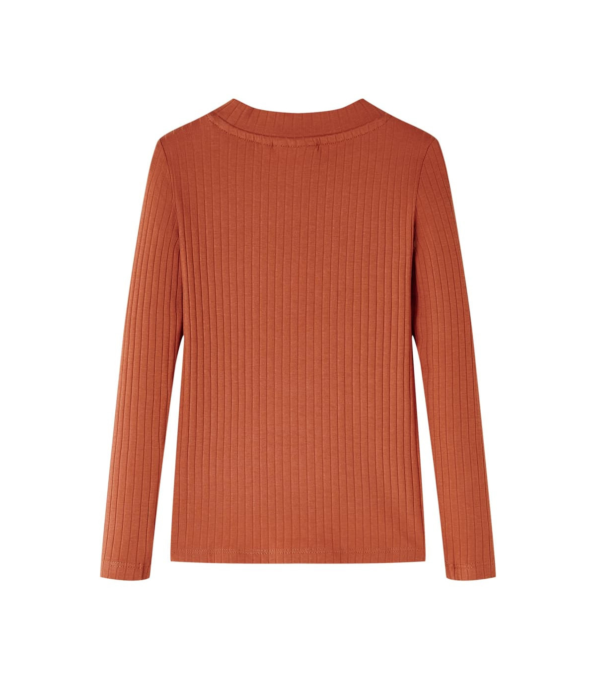 Our children's clothing line is all about affordable, high-quality, and durable everyday wear for kids aged 1.5 to 10. Our range includes jackets, sweaters, shirts, and many more, with a variety in style, size, and colour. Following the high-quality standard in the market, we are using high-grade materials and advanced manufacturing techniques. This kids' t-shirt has long sleeves, a round neckline, and a straight model. This cognac t-shirt features a bowknot decoration. The children's long sleeve t-shirt is made from soft material with 95% cotton and 5% elastane for extra comfort and breathability. Good to know: This size chart in the picture provides measurements for kids aged 1.5 to 10, covering the height, chest, waist, and hip. You can easily find the right fit for your child.