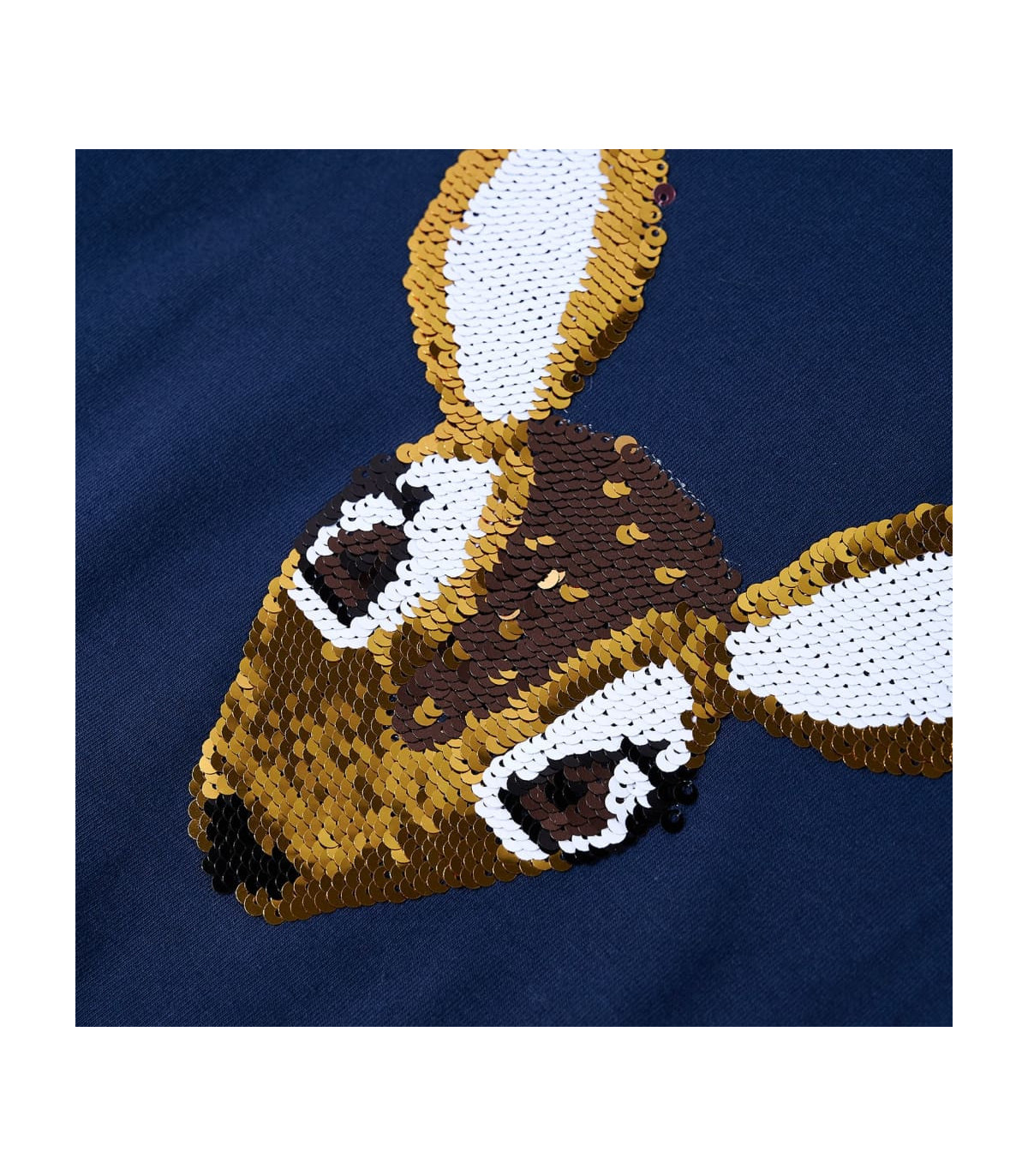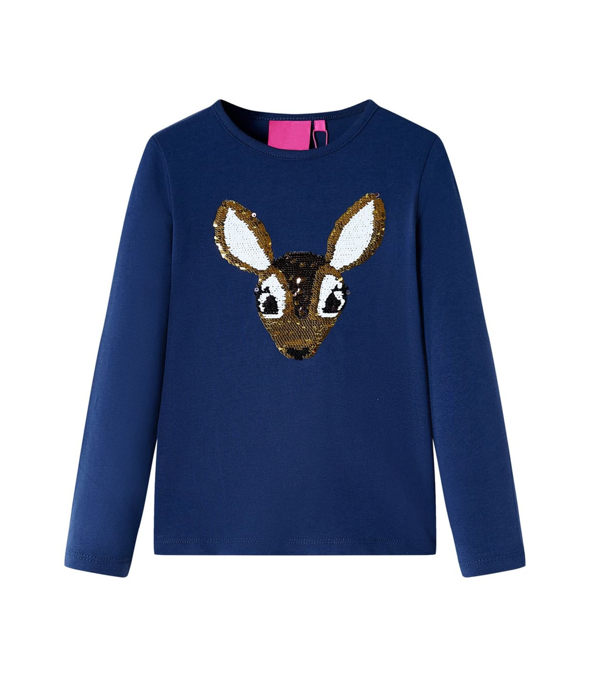 Our children's clothing line is all about affordable, high-quality, and durable everyday wear for kids aged 1.5 to 10. Our range includes jackets, sweaters, shirts, and many more, with a variety in style, size, and colour. Following the high-quality standard in the market, we are using high-grade materials and advanced manufacturing techniques. This kids' t-shirt has long sleeves, a round neckline, and a regular model. A deer motif, embroidered with reversible sequins, brings a touch of magic to the front. The children's long sleeve t-shirt is made from soft material with 95% cotton and 5% elastane for extra comfort and breathability. Good to know: The size chart in the picture provides measurements for kids aged 1.5 to 10, covering the height, chest, waist, and hip. You can easily find the right fit for your child.