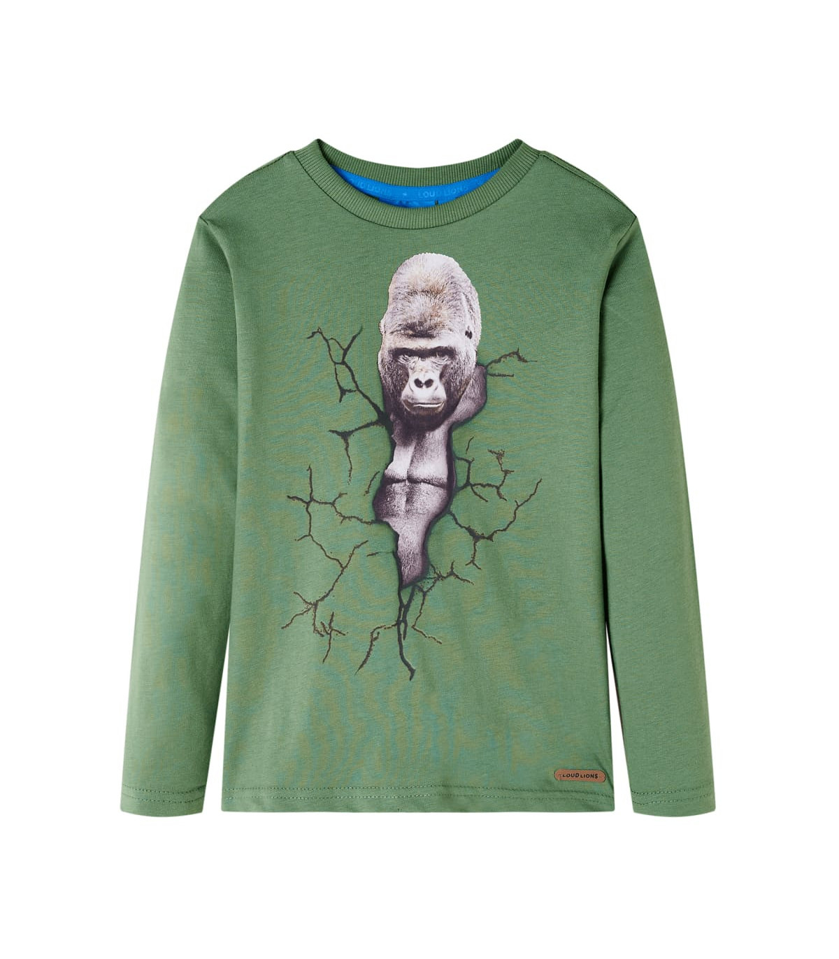 Our children's clothing line is all about affordable, high-quality, and durable everyday wear for kids aged 1.5 to 10. Our range includes jackets, sweaters, shirts, and many more, with a variety in style, size, and colour. Following the high-quality standard in the market, we are using high-grade materials and advanced manufacturing techniques. This kids' T-shirt has long sleeves, a round neckline, and a straight model. This dark ochre T-shirt features a big gorilla. The children's long sleeve T-shirt is made of 100% cotton for a soft and comfortable touch. Good to know: The size chart in the picture provides measurements for kids aged 1.5 to 10, covering the height, chest, waist, and hip. You can easily find the right fit for your child.