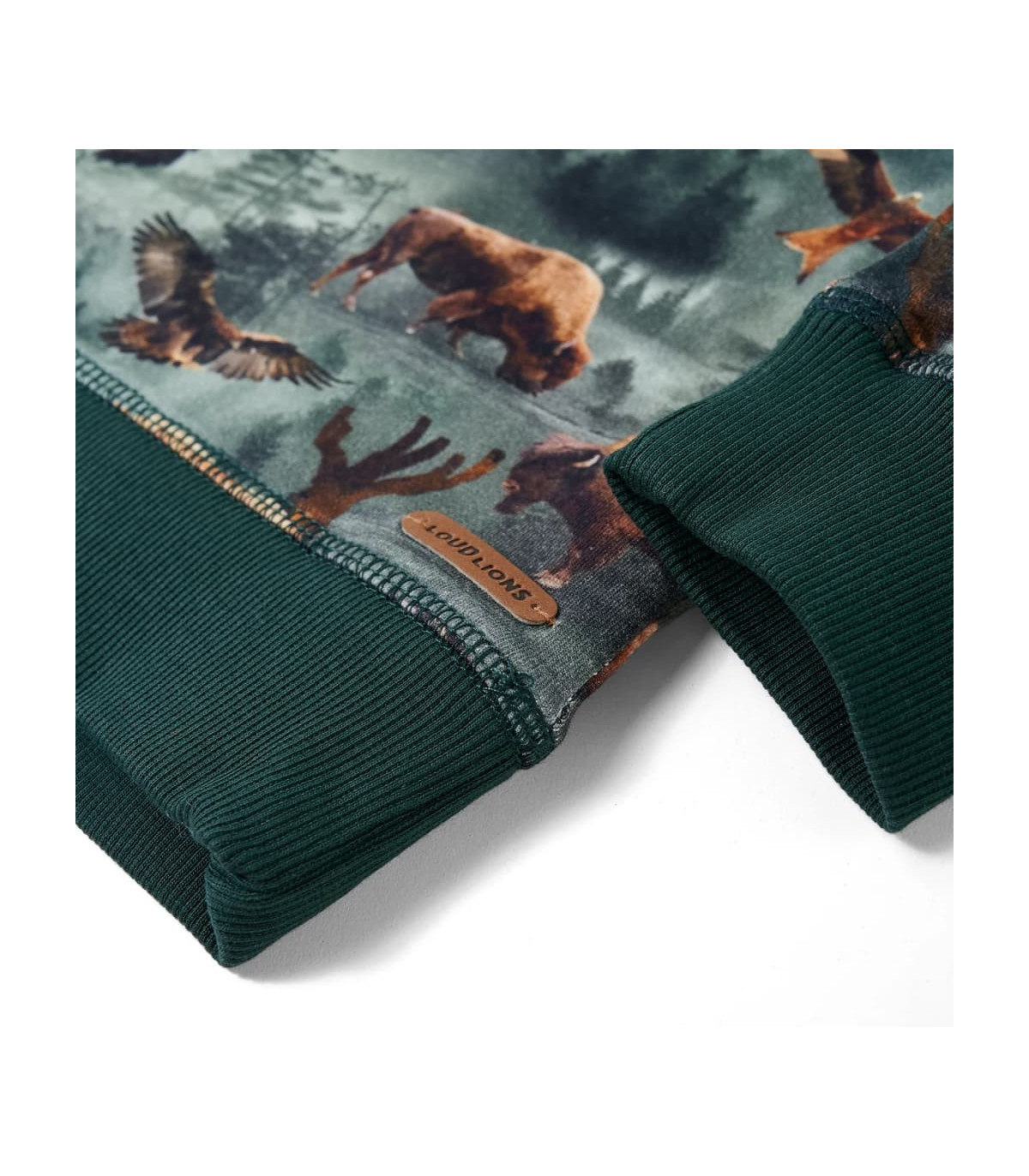 Our children's clothing line is all about affordable, high-quality, and durable everyday wear for kids aged 1.5 to 10. Our range includes jackets, sweaters, shirts, and many more, with a variety in style, size, and colour. Following the high-quality standard in the market, we are using high-grade materials and advanced manufacturing techniques. This kids' sweatshirt has long sleeves, a round neck, and rib-knit edges at the cuffs, neckline, and bottom. The children's sweatshirt features cattle, eagle and forest prints all over. The kids' top is made of soft material that includes 95% cotton and 5% elastane for comfort and breathability. Good to know: The size chart in the picture provides measurements for kids aged 1.5 to 10, covering the height, chest, waist, and hip. You can easily find the right fit for your child.