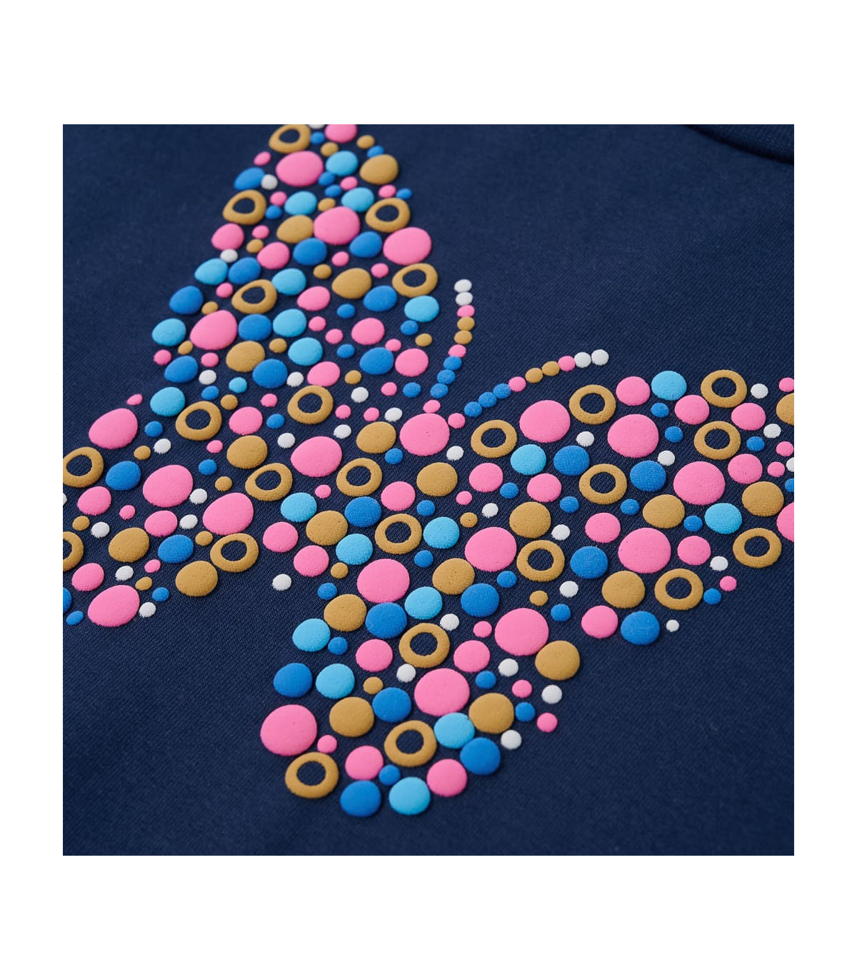 Our children's clothing line is all about affordable, high-quality, and durable everyday wear for kids aged 1.5 to 10. Our range includes jackets, sweaters, shirts, and many more, with a variety in style, size, and colour. Following the high-quality standard in the market, we are using high-grade materials and advanced manufacturing techniques. This kids' sweatshirt has long sleeves, a round neck, and rib-knit edges at the cuffs, neckline, and bottom. The kids' top features a beautifully printed butterfly with colourful dots. The pullover sweatshirt is made of 95% cotton and 5% elastane for comfort and breathability. The soft fleece lining provides extra warmth. Good to know: The size chart in the picture provides measurements for kids aged 1.5 to 10, covering the height, chest, waist, and hip. You can easily find the right fit for your child.