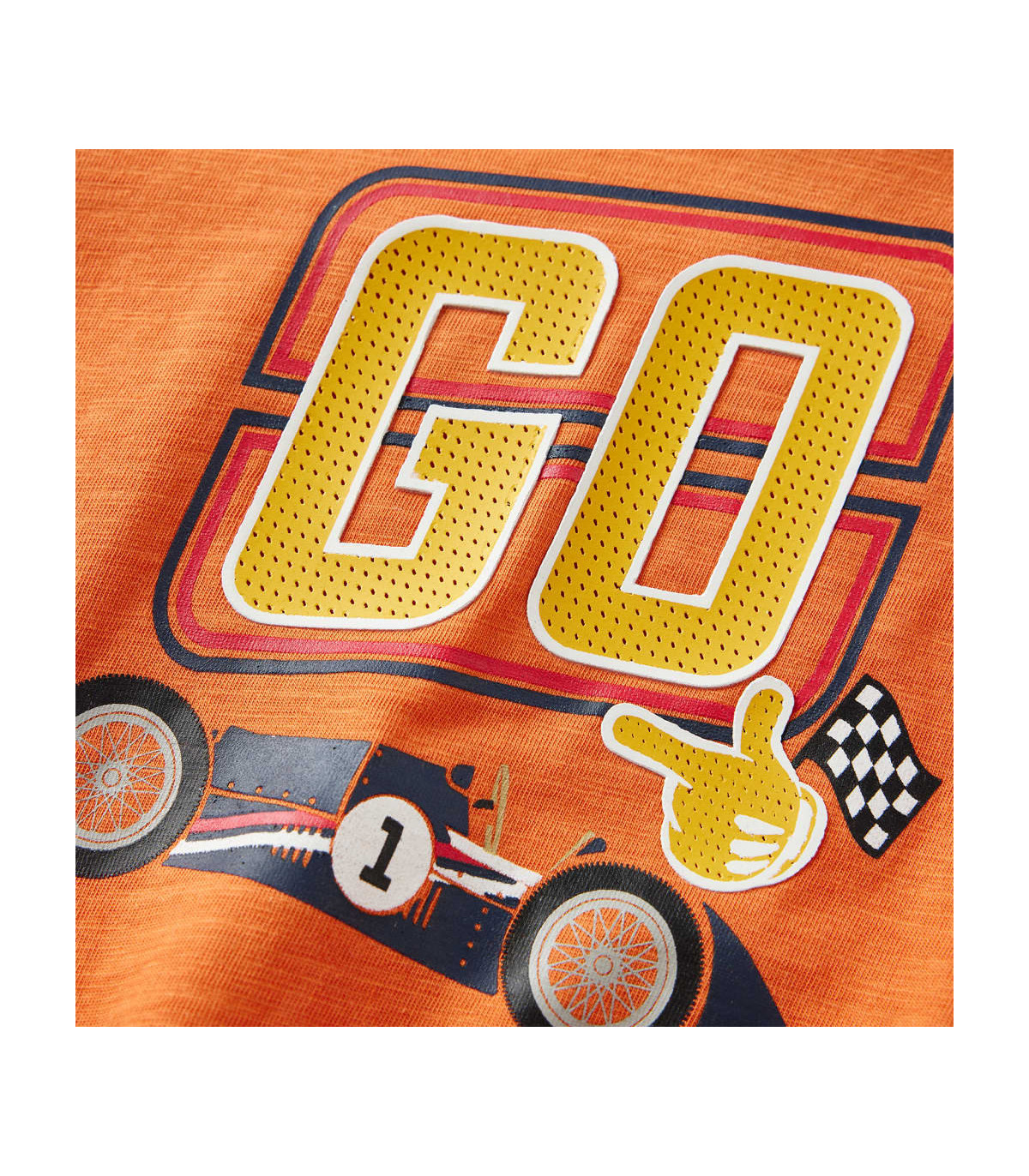 Our children's clothing line is all about affordable, high-quality, and durable everyday wear for kids aged 1.5 to 10. Our range includes jackets, sweaters, shirts, and many more, with a variety in style, size, and colour. Following the high-quality standard in the market, we are using high-grade materials and advanced manufacturing techniques. This kids' T-shirt has long sleeves, a round neckline, and a straight model. This dark orange T-shirt features a racing car. The children's long sleeve T-shirt is made of 100% cotton with a soft and comfortable touch. Good to know: The size chart in the picture provides measurements for kids aged 1.5 to 10, covering the height, chest, waist, and hip. You can easily find the right fit for your child.