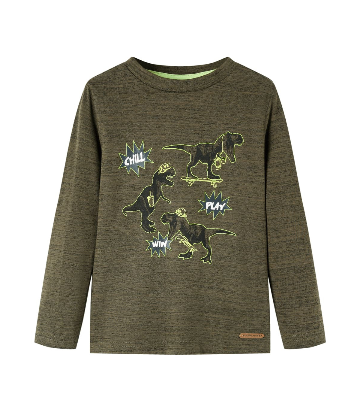 Kids' T-shirt with Long Sleeves Dark Khaki Melange 104
