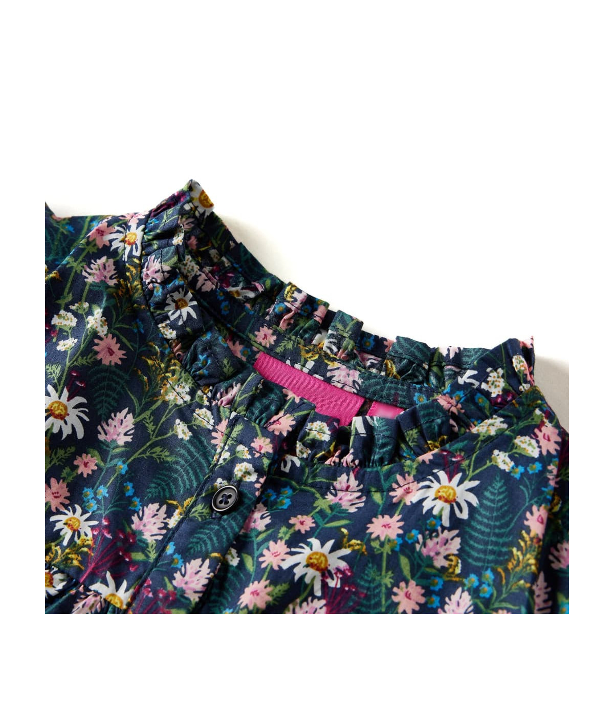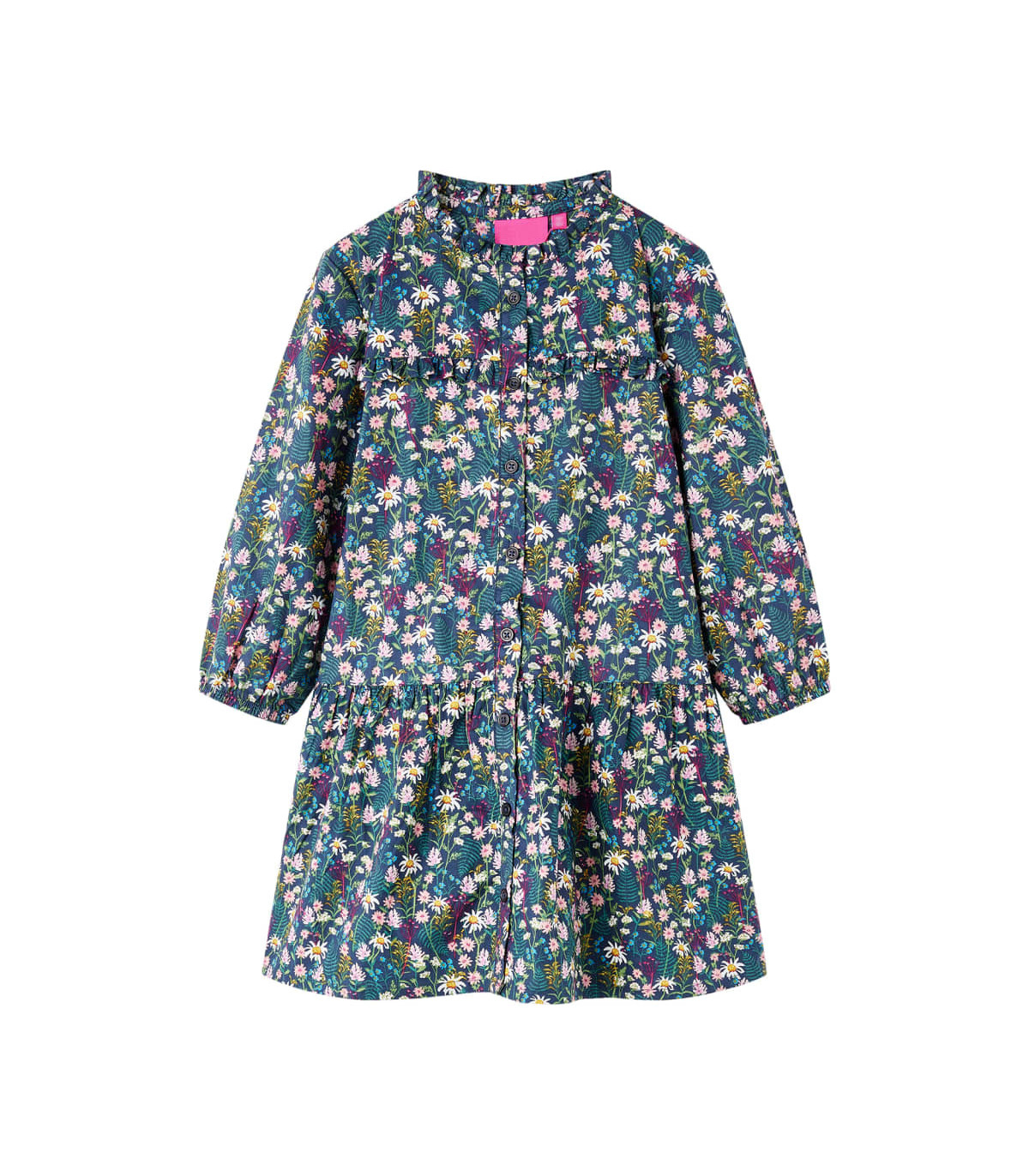 Our children's clothing line is all about affordable, high-quality, and durable everyday wear for kids aged 1.5 to 10. Our range includes jackets, sweaters, shirts, and many more, with a variety in style, size, and colour. Following the high-quality standard in the market, we are using high-grade materials and advanced manufacturing techniques. This kids' dress with long sleeves has a round neckline and closes with a row of front buttons. The pretty ruffles and all-over floral print make the dress look elegant and beautiful. The floral dress is made of 100% cotton for comfort and warmth. Good to know: The size chart in the picture provides measurements for kids aged 1.5 to 10, covering the height, chest, waist, and hip. You can easily find the right fit for your child.
