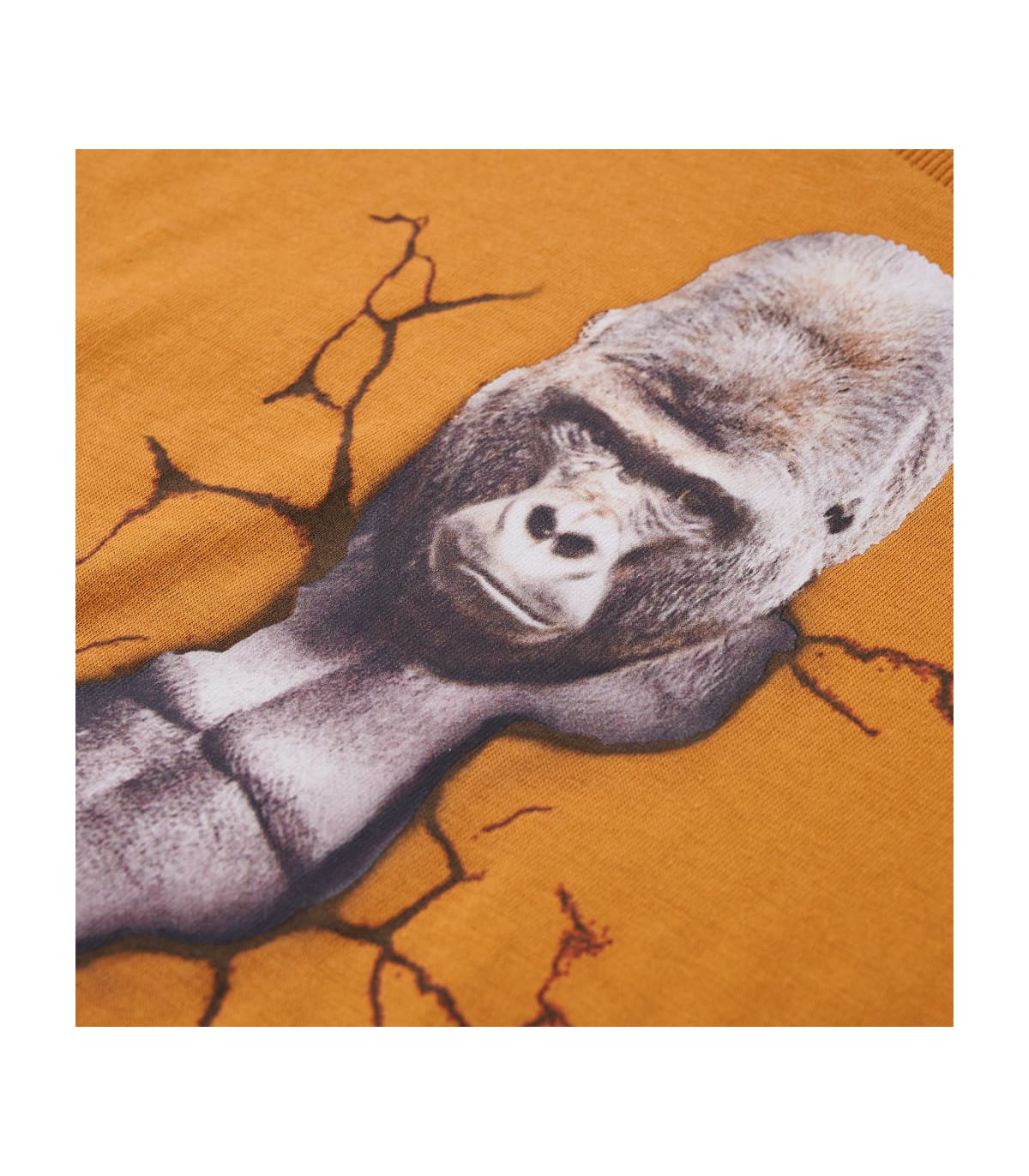Our children's clothing line is all about affordable, high-quality, and durable everyday wear for kids aged 1.5 to 10. Our range includes jackets, sweaters, shirts, and many more, with a variety in style, size, and colour. Following the high-quality standard in the market, we are using high-grade materials and advanced manufacturing techniques. This kids' T-shirt has long sleeves, a round neckline, and a straight model. This dark ochre T-shirt features a big gorilla. The children's long sleeve T-shirt is made of 100% cotton for a soft and comfortable touch. Good to know: The size chart in the picture provides measurements for kids aged 1.5 to 10, covering the height, chest, waist, and hip. You can easily find the right fit for your child.