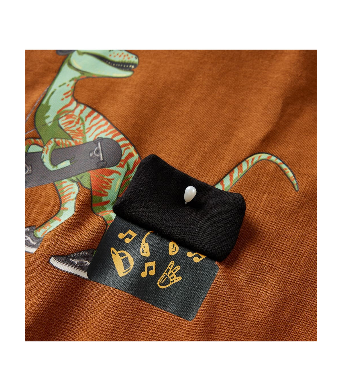 Our children's clothing line is all about affordable, high-quality, and durable everyday wear for kids aged 1.5 to 10. Our range includes jackets, sweaters, shirts, and many more, with a variety in style, size, and colour. Following the high-quality standard in the market, we are using high-grade materials and advanced manufacturing techniques. This kids' T-shirt has long sleeves, a round neckline, and a straight model. This cognac T-shirt features a dinosaur with fashion clothes and sports equipment. The children's long sleeve T-shirt is made of 100% cotton that is treated with a silicon and enzyme wash for a soft and comfortable touch. Good to know: The size chart in the picture provides measurements for kids aged 1.5 to 10, covering the height, chest, waist, and hip. You can easily find the right fit for your child.