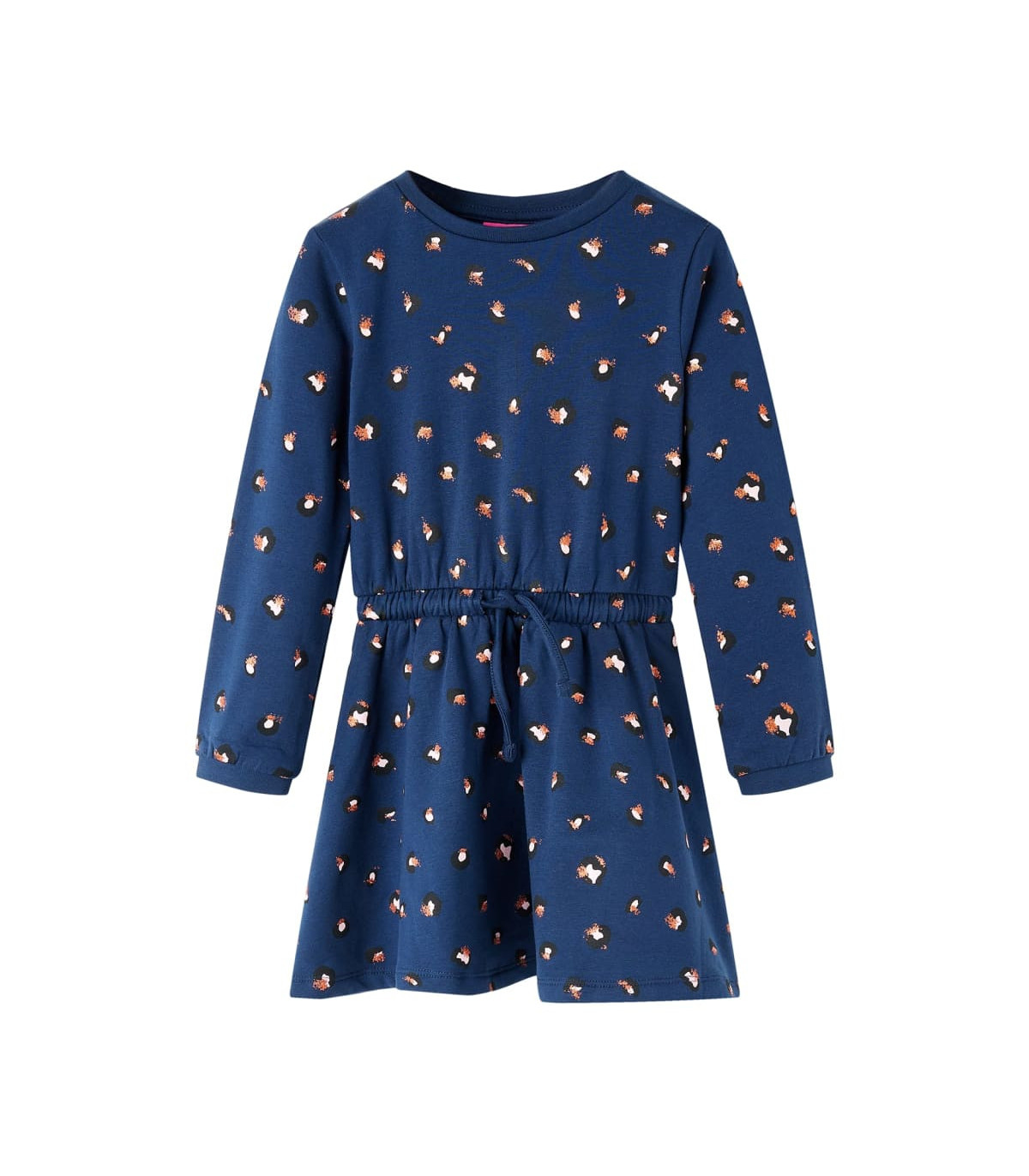 Our children's clothing line is all about affordable, high-quality, and durable everyday wear for kids aged 1.5 to 10. Our range includes jackets, sweaters, shirts, and many more, with a variety in style, size, and colour. Following the high-quality standard in the market, we are using high-grade materials and advanced manufacturing techniques. This kids' dress with long sleeves has a round neckline and drawstring. The all-over dot print makes the dress look elegant and beautiful. The dot dress is made of 95% cotton, 5% elastane for comfort and breathability. Good to know: This size chart in the picture provides measurements for kids aged 1.5 to 10, covering the height, chest, waist, and hip. You can easily find the right fit for your child.