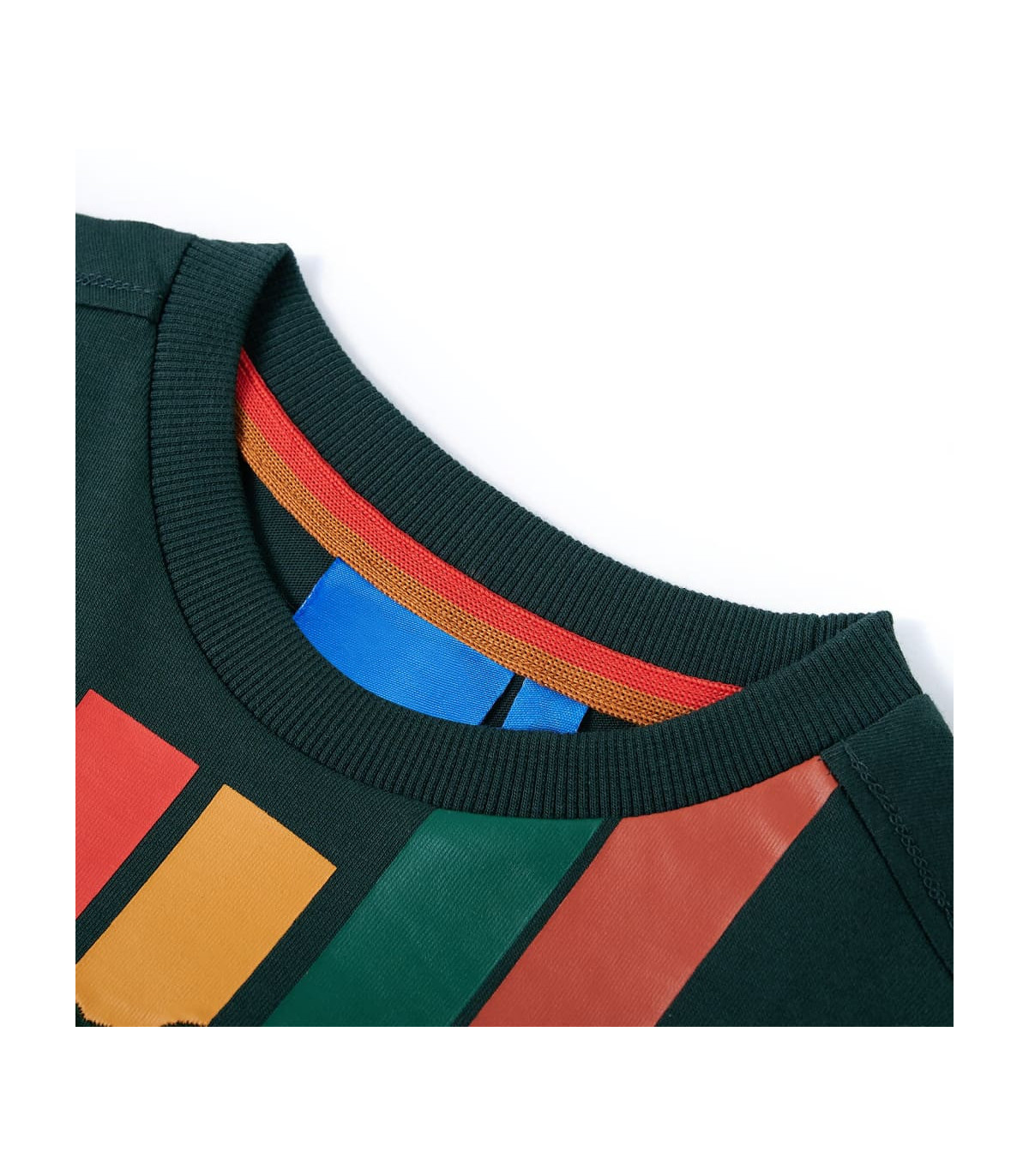 Our children's clothing line is all about affordable, high-quality, and durable everyday wear for kids aged 1.5 to 10. Our range includes jackets, sweaters, shirts, and many more, with a variety in style, size, and colour. Following the high-quality standard in the market, we are using high-grade materials and advanced manufacturing techniques. This kids' T-shirt has long sleeves, a round neckline, and a straight model. This dark green T-shirt features a racing car and colourful stripes. The children's long sleeve T-shirt is made of 100% cotton that is treated with a silicon and enzyme wash for a soft and comfortable touch. Good to know: The size chart in the picture provides measurements for kids aged 1.5 to 10, covering the height, chest, waist, and hip. You can easily find the right fit for your child.