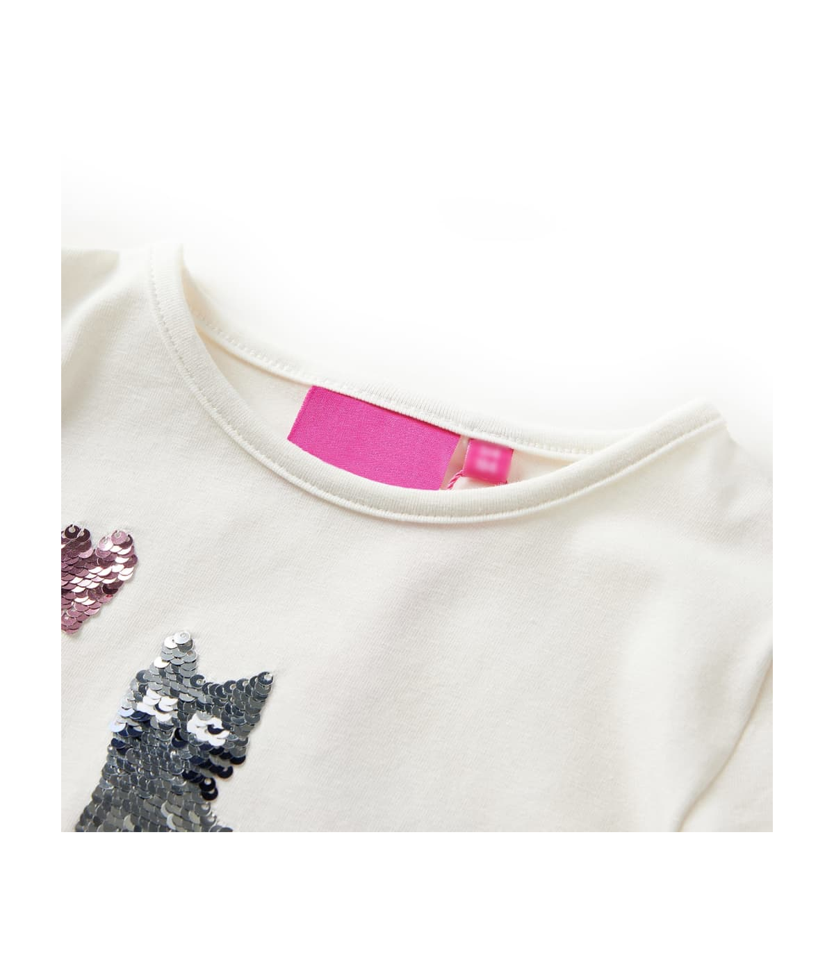 Our children's clothing line is all about affordable, high-quality, and durable everyday wear for kids aged 1,5 to 10. Our range includes jackets, sweaters, shirts, and many more, with a variety in style, size, and colour. Following the high-quality standard in the market, we are using high-grade materials and advanced manufacturing techniques. This kids' t-shirt has long sleeves, a round neckline, and a straight model. This light pink t-shirt features a sparkling sequin cat and is embellished with sequin hearts. The children's long sleeve t-shirt is made from soft material with 95% cotton and 5% elastane for extra comfort and breathability. Good to know: The size chart in the picture provides measurements for kids aged 1,5 to 10, covering the height, chest, waist, and hip. You can easily find the right fit for your child.