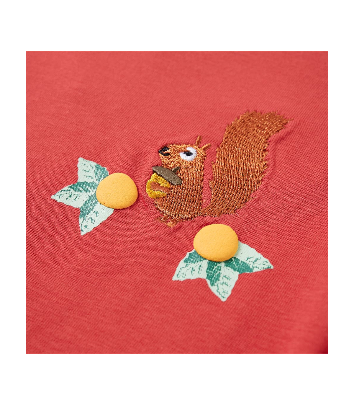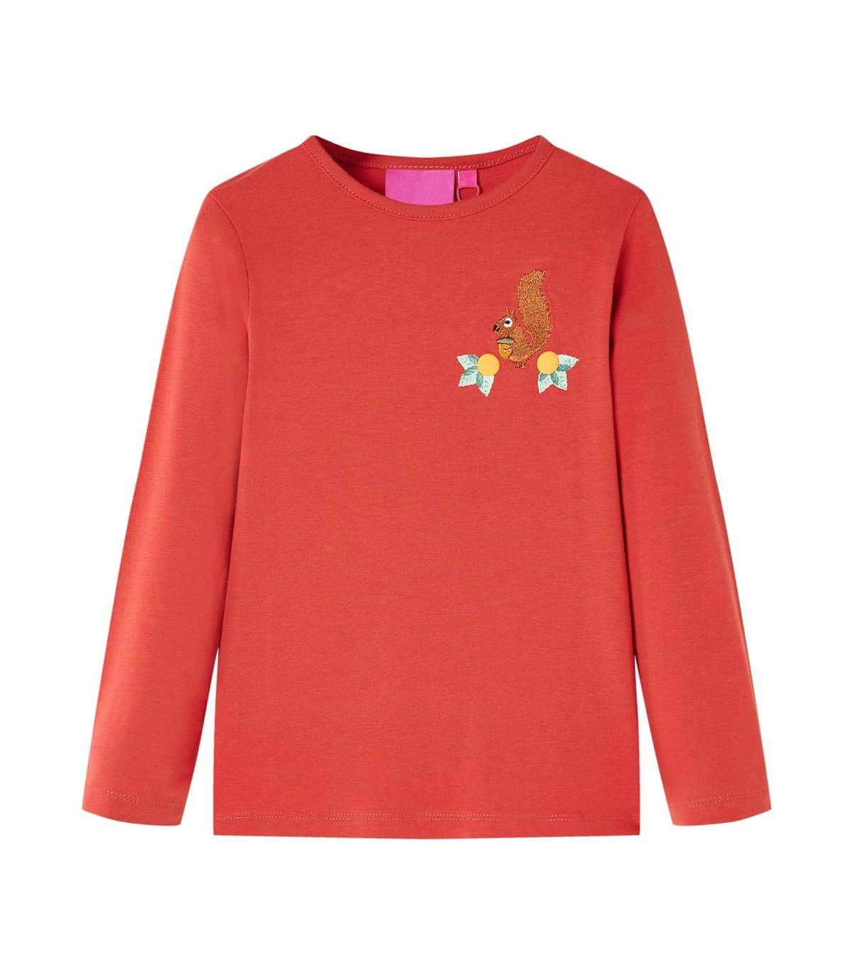Our children's clothing line is all about affordable, high-quality, and durable everyday wear for kids aged 1.5 to 10. Our range includes jackets, sweaters, shirts, and many more, with a variety in style, size, and colour. Following the high-quality standard in the market, we are using high-grade materials and advanced manufacturing techniques. This kids' t-shirt has long sleeves, a round neckline, and a straight model. The children's t-shirt features a lovely squirrel holding a pine cone. The children's long sleeve t-shirt is made from soft material with 95% cotton and 5% elastane for extra comfort and breathability. Good to know: The size chart in the picture provides measurements for kids aged 1.5 to 10, covering the height, chest, waist, and hip. You can easily find the right fit for your child.