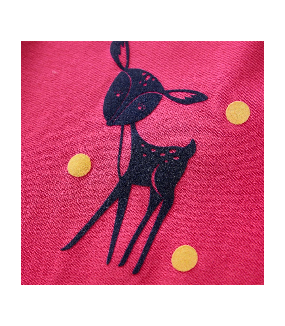 Our children’s clothing line is all about affordable, high-quality, and durable everyday wear for kids aged 1.5 to 10. Our range includes jackets, sweaters, shirts, and many more, with a variety in style, size, and colour. Following the high-quality standard in the market, we are using high-grade materials and advanced manufacturing techniques. This kids' t-shirt has long sleeves, a round neckline, and a straight model. The children's t-shirt features a cute, flocked deer. The children's long sleeve t-shirt is made from soft material with 95% cotton and 5% elastane for extra comfort and breathability. Good to know: The size chart in the picture provides measurements for kids aged 1.5 to 10, covering the height, chest, waist, and hip. You can easily find the right fit for your child.
