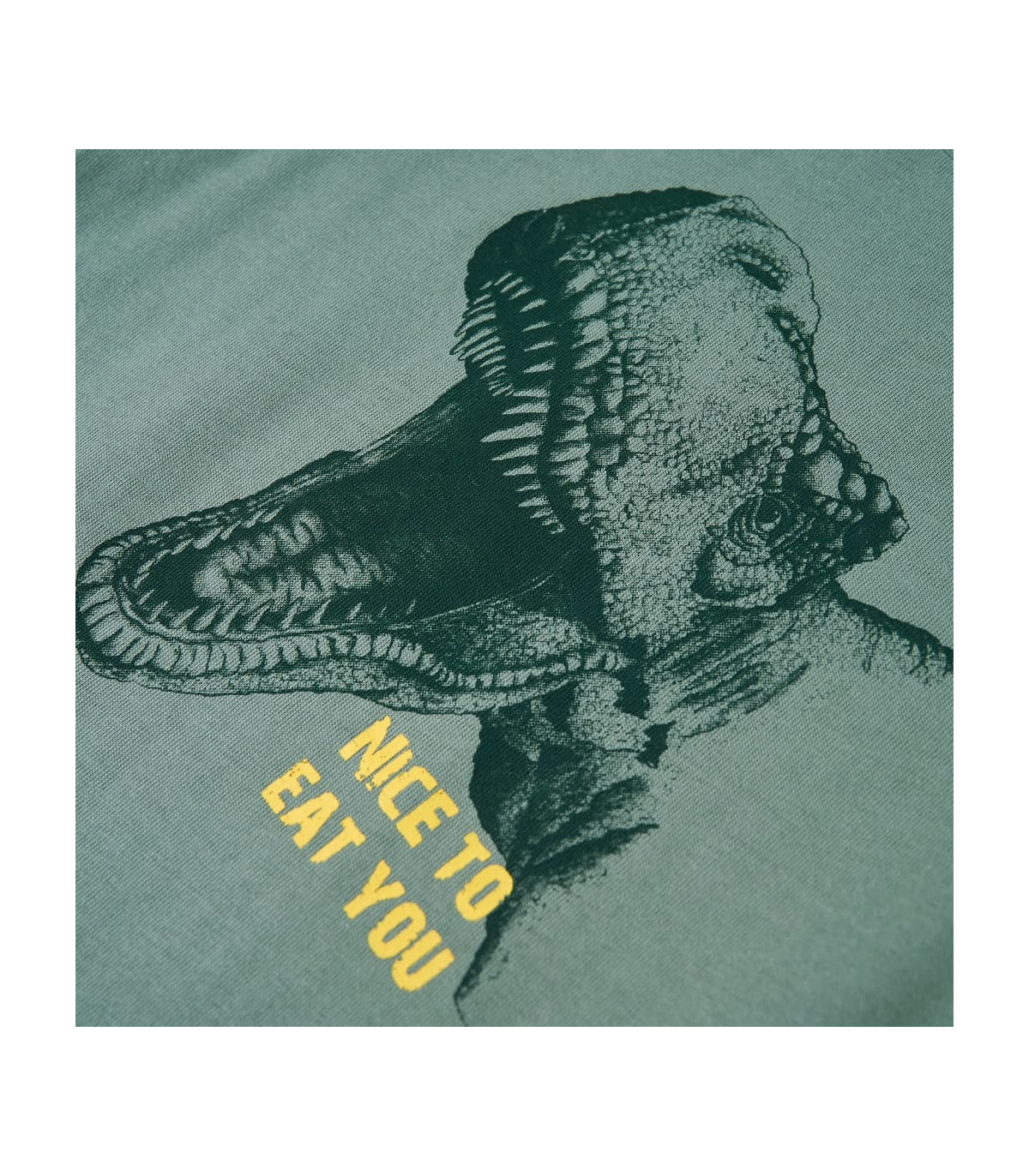 Our children's clothing line is all about affordable, high-quality, and durable everyday wear for kids aged 1.5 to 10. Our range includes jackets, sweaters, shirts, and many more, with a variety in style, size, and colour. Following the high-quality standard in the market, we are using high-grade materials and advanced manufacturing techniques. This kids' T-shirt has short sleeves, a round neckline, and a straight model. The children's T-shirt features a big dinosaur. The kids' short sleeved T-shirt is made of 100% cotton for a soft and comfortable touch. Good to know: The size chart in the picture provides measurements for kids aged 1.5 to 10, covering the height, chest, waist, and hip. You can easily find the right fit for your child.