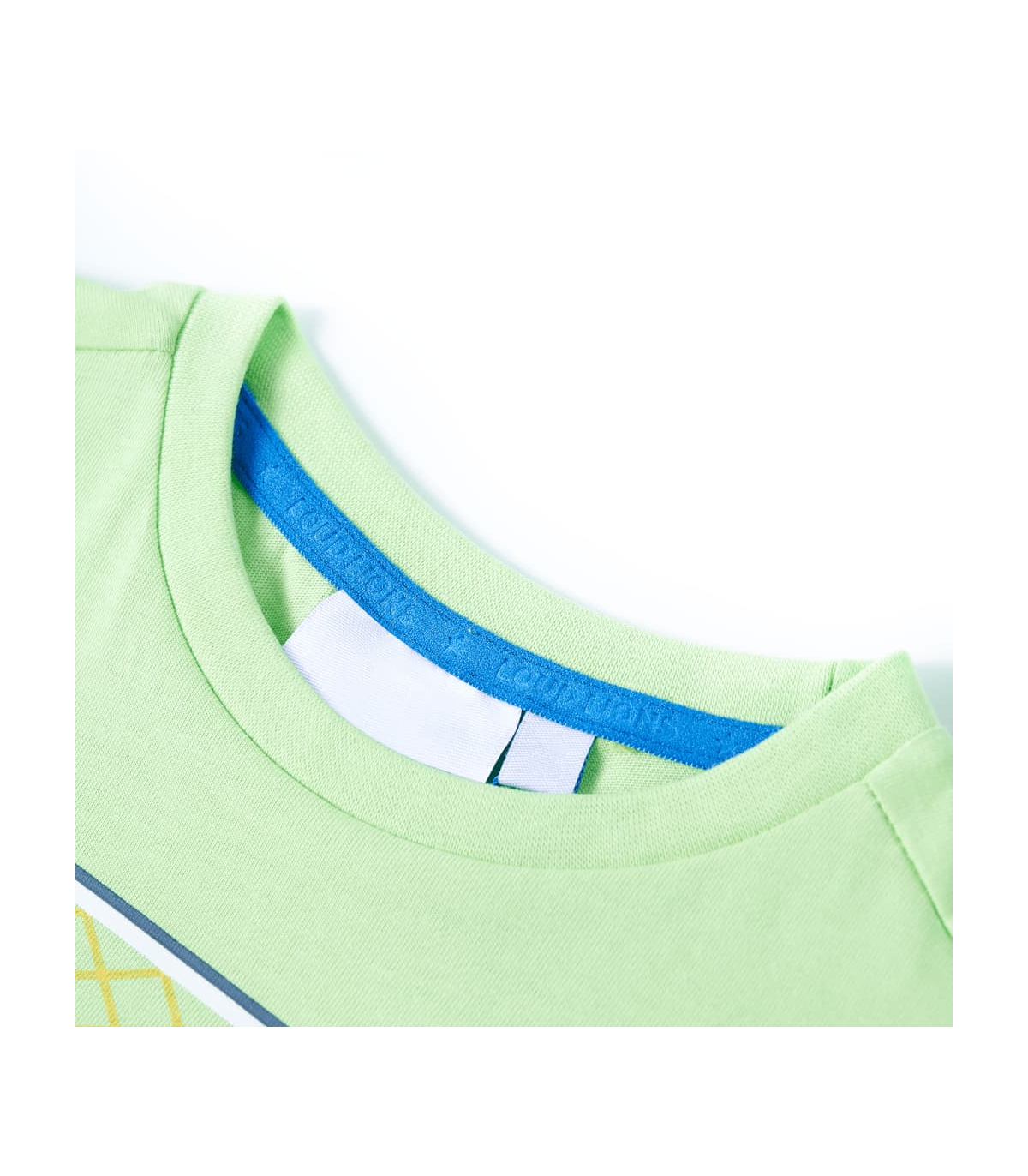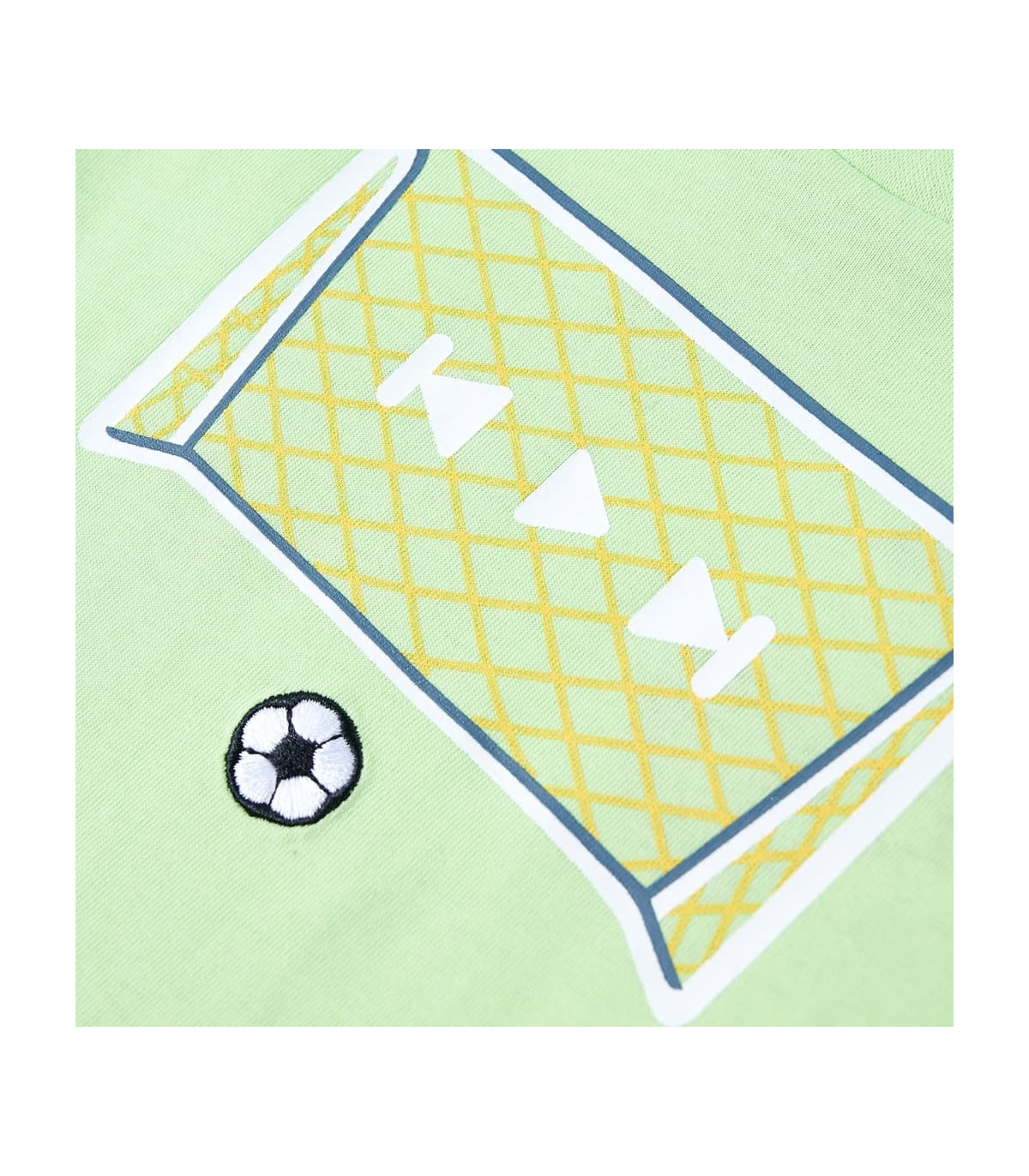 Our children's clothing line is all about affordable, high-quality, and durable everyday wear for kids aged 1,5 to 10. Our range includes jackets, sweaters, shirts, and many more, with a variety in style, size, and colour. Following the high-quality standard in the market, we are using high-grade materials and advanced manufacturing techniques. This kids' T-shirt has short sleeves, a round neckline, and a straight model. The children's T-shirt features a printed football goal and an embroidered football. The kids' short sleeved T-shirt is made of 100% cotton for a soft and comfortable touch. Good to know: The size chart in the picture provides measurements for kids aged 1,5 to 10, covering the height, chest, waist, and hip. You can easily find the right fit for your child.
