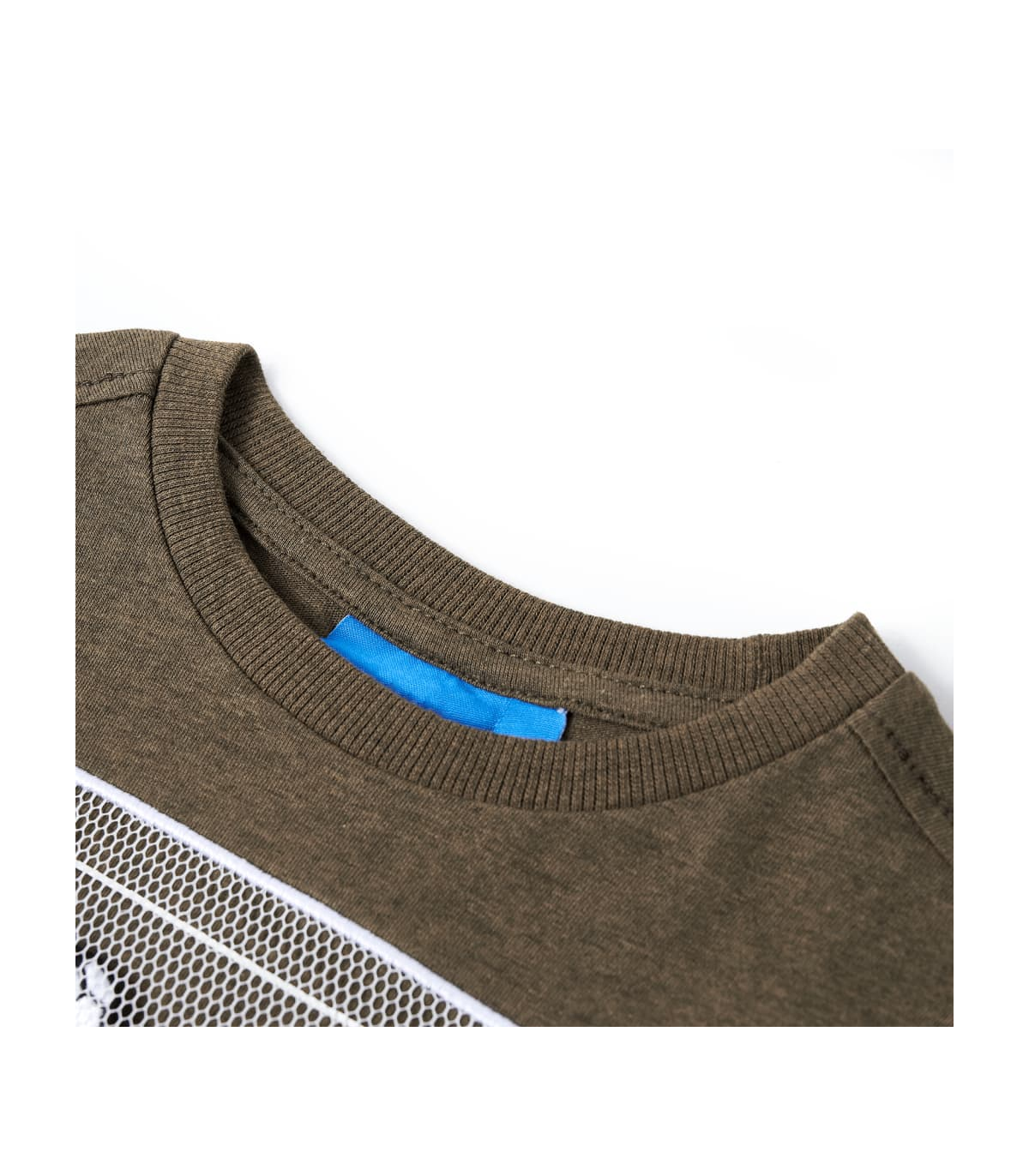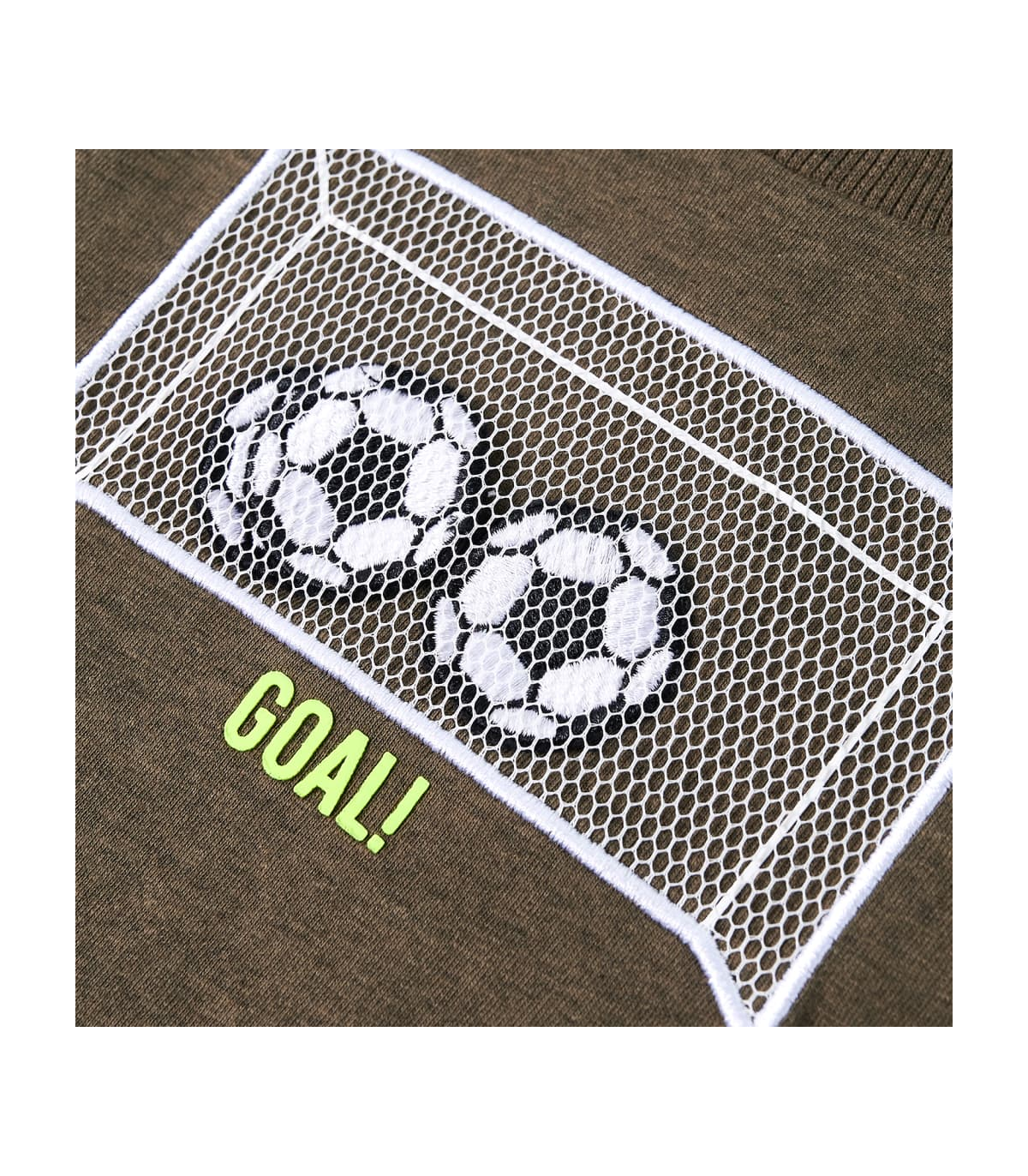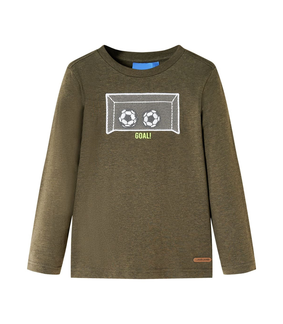 Our children's clothing line is all about affordable, high-quality, and durable everyday wear for kids aged 1.5 to 10. Our range includes jackets, sweaters, shirts, and many more, with a variety in style, size, and colour. Following the high-quality standard in the market, we are using high-grade materials and advanced manufacturing techniques. This kids' T-shirt has long sleeves, a round neckline, and a straight model. This khaki melange T-shirt features a football goal. The children's long sleeve T-shirt is made of 80% cotton and 20% viscose that is treated with a silicon and enzyme wash for a soft and comfortable touch. Good to know: The size chart in the picture provides measurements for kids aged 1.5 to 10, covering the height, chest, waist, and hip. You can easily find the right fit for your child.