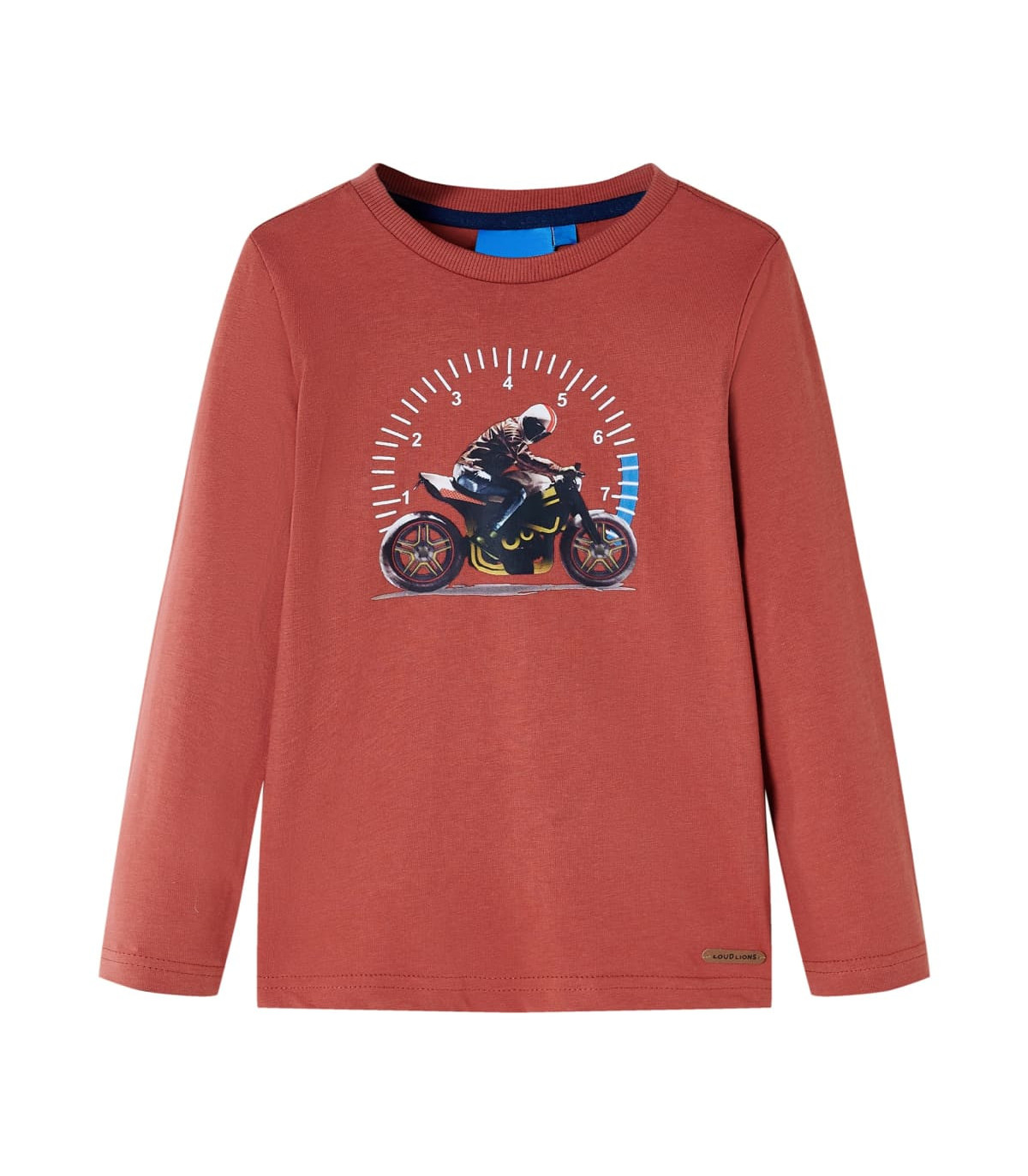 Our children's clothing line is all about affordable, high-quality, and durable everyday wear for kids aged 1.5 to 10. Our range includes jackets, sweaters, shirts, and many more, with a variety in style, size, and colour. Following the high-quality standard in the market, we are using high-grade materials and advanced manufacturing techniques. This kids' T-shirt has long sleeves, a round neckline, and a straight model. This henna T-shirt features a man on a motorbike. The children's long sleeve T-shirt is made of 100% cotton that is treated with a silicon and enzyme wash for a soft and comfortable touch. Good to know: The size chart in the picture provides measurements for kids aged 1.5 to 10, covering the height, chest, waist, and hip. You can easily find the right fit for your child.