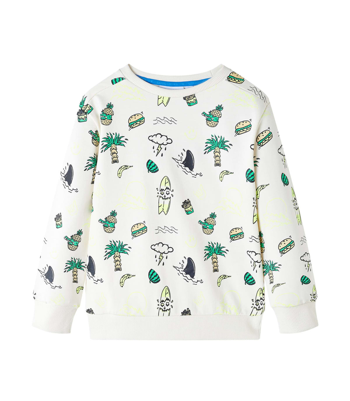 Our children's clothing line is all about affordable, high-quality, and durable everyday wear for kids aged 1.5 to 10. Our range includes jackets, sweaters, shirts, and many more, with a variety in style, size, and colour. Following the high-quality standard in the market, we are using high-grade materials and advanced manufacturing techniques. This kids' sweatshirt has long sleeves, a round neck, and rib-knit edges at the cuffs, neckline, and bottom. The kids' top features a colourful all-over print. The pullover sweatshirt is made of 80% cotton and 20% polyester for comfort and breathability. Good to know: The size chart in the picture provides measurements for kids aged 1.5 to 10, covering the height, chest, waist, and hip. You can easily find the right fit for your child.