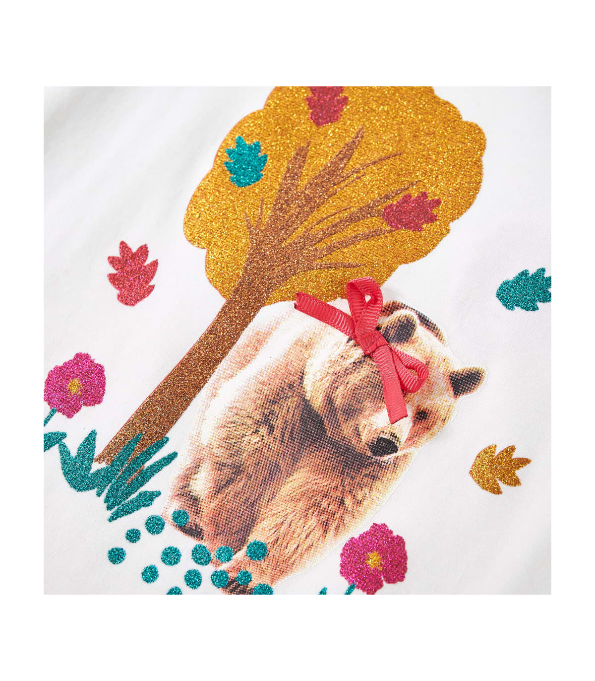 Our children's clothing line is all about affordable, high-quality, and durable everyday wear for kids aged 1.5 to 10. Our range includes jackets, sweaters, shirts, and many more, with a variety in style, size, and colour. Following the high-quality standard in the market, we are using high-grade materials and advanced manufacturing techniques. This kids' t-shirt has long sleeves, a round neckline, and a keyhole opening with a button at the back of the neck. This burnt orange t-shirt features a lovely bear and shiny tree print. The children's long sleeve t-shirt is made from soft material with 95% cotton and 5% elastane for extra comfort and breathability. Good to know: This size chart in the picture provides measurements for kids aged 1.5 to 10, covering the height, chest, waist, and hip. You can easily find the right fit for your child.
