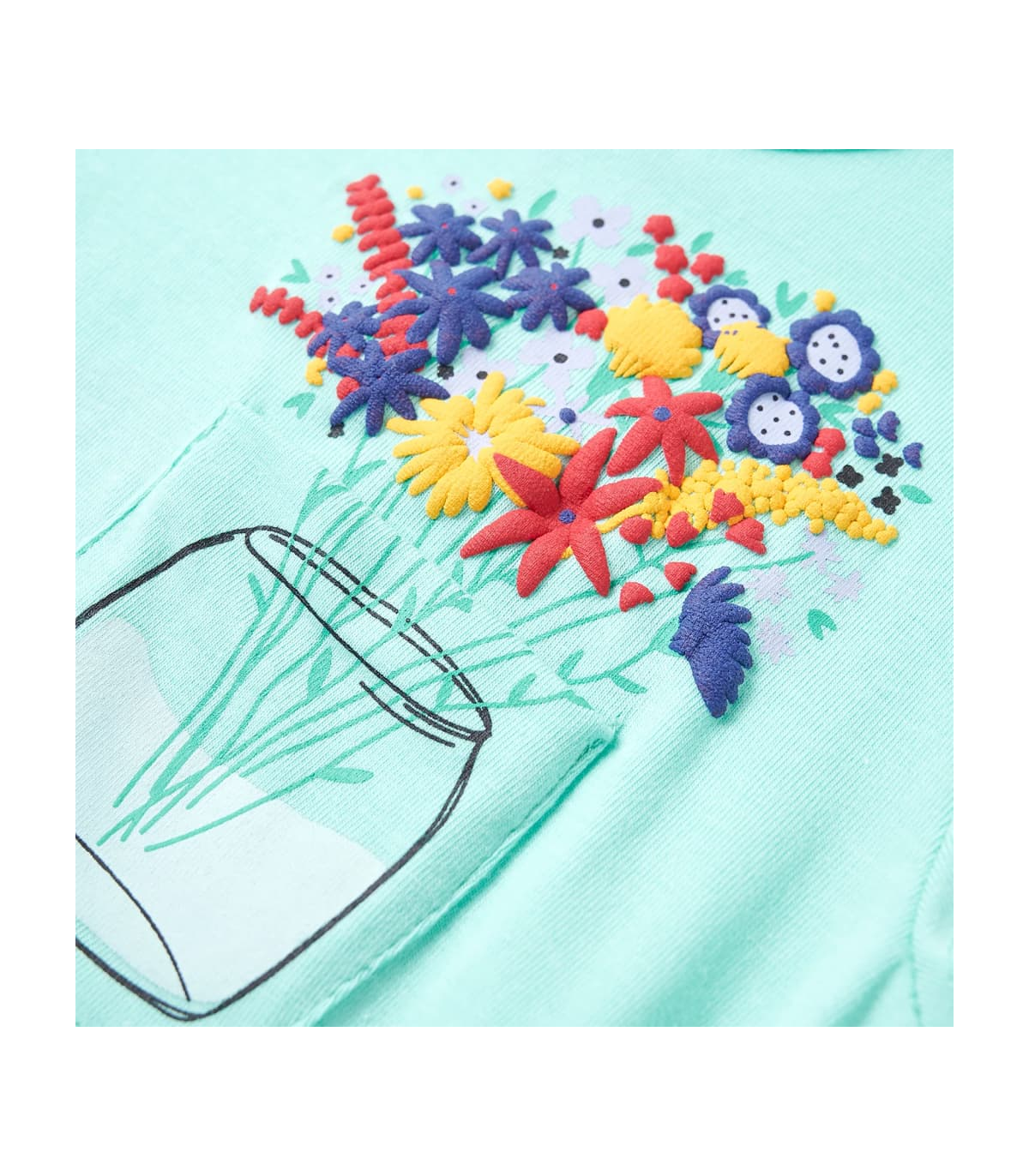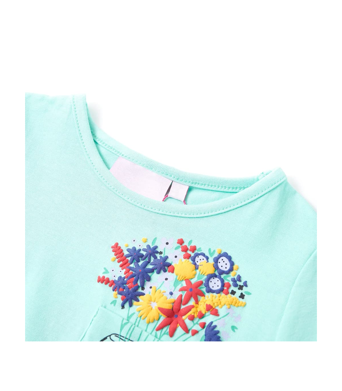 Our children's clothing line is all about affordable, high-quality, and durable everyday wear for kids aged 1.5 to 10. Our range includes jackets, sweaters, shirts, and many more, with a variety in style, size, and colour. Following the high-quality standard in the market, we are using high-grade materials and advanced manufacturing techniques. This kids' T-shirt has short sleeves, a round neckline, and a straight model. This bright pink T-shirt features a beautiful bunch of flowers and a patch pocket on the left chest. The children's short sleeve T-shirt is made of 95% cotton and 5% elastane for comfort and breathability. Good to know: The size chart in the picture provides measurements for kids aged 1.5 to 10, covering the height, chest, waist, and hip. You can easily find the right fit for your child.