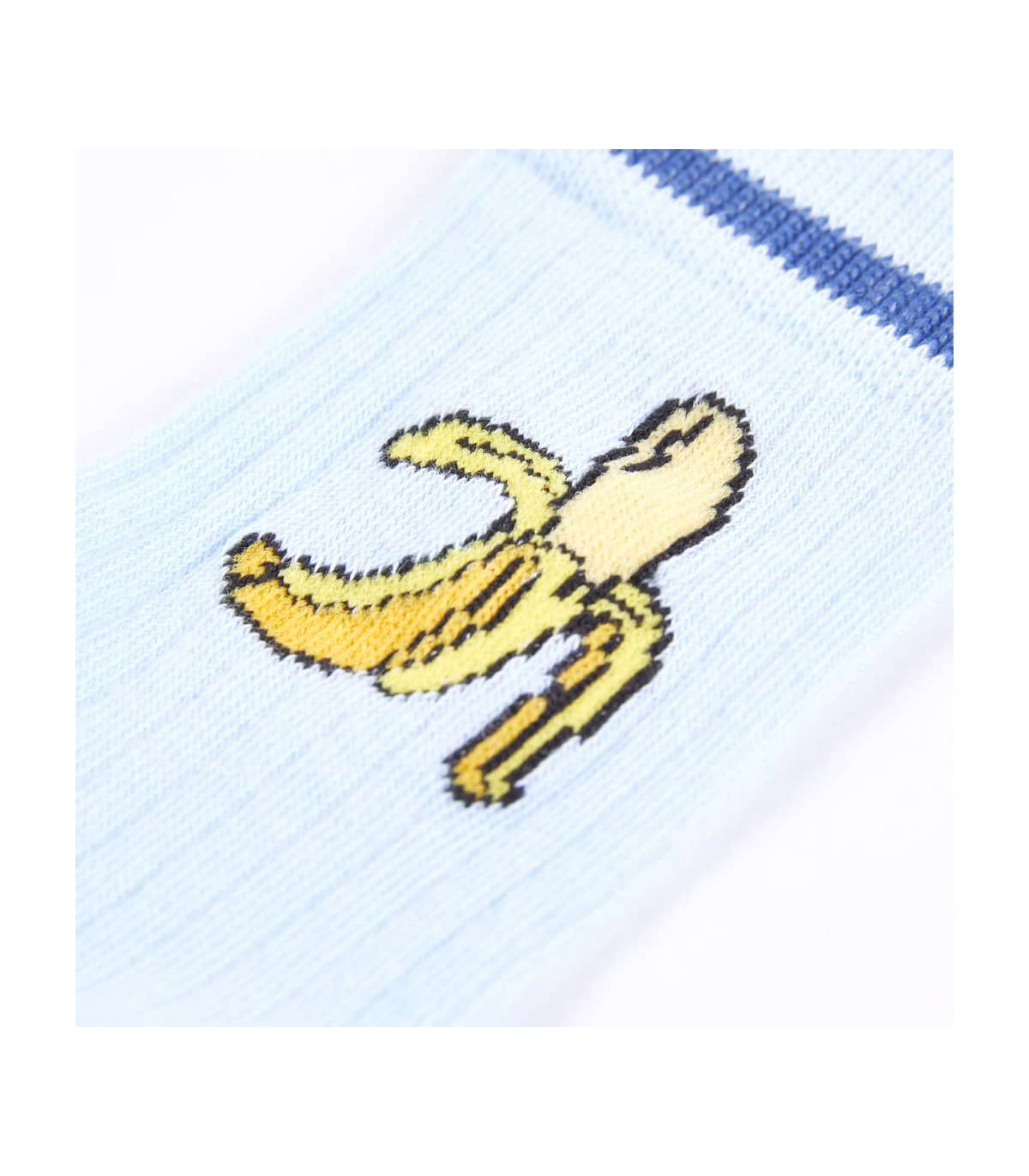 Our children's clothing line is all about affordable, high-quality, and durable everyday wear for kids aged 1.5 to 10. Our range includes jackets, sweaters, shirts, and many more, with a variety in style, size, and colour. Following the high quality standard in the market, we are using high-grade materials and advanced manufacturing techniques. These kids’ socks have coloured stripe and a peeled banana print. They have reinforced heels and toes to last longer. Made from cotton-rich fabric, the children’s socks keep feet warm and dry. Good to know: The size chart in the picture provides measurements for kids aged 1.5 to 10. You can easily find the right fit for your child.