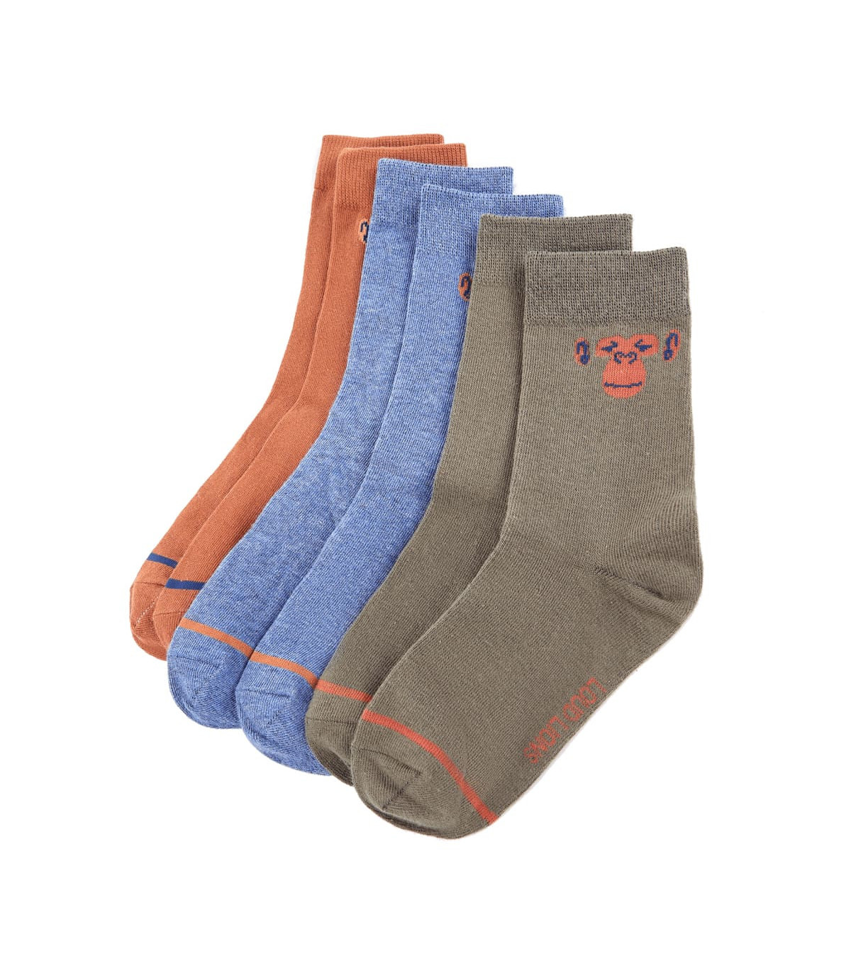 Our children's clothing line is all about affordable, high-quality, and durable everyday wear for kids aged 1.5 to 10. Our range includes jackets, sweaters, shirts, and many more, with a variety in style, size, and colour. Following the high quality standard in the market, we are using high-grade materials and advanced manufacturing techniques. These kids’ socks have coloured stripe and a monkey print. They have reinforced heels and toes to last longer. Made from cotton-rich fabric, the children’s socks keep feet warm and dry. Good to know: The size chart in the picture provides measurements for kids aged 1.5 to 10. You can easily find the right fit for your child.