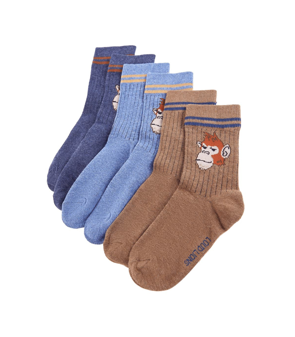 Our children's clothing line is all about affordable, high-quality, and durable everyday wear for kids aged 1.5 to 10. Our range includes jackets, sweaters, shirts, and many more, with a variety in style, size, and colour. Following the high quality standard in the market, we are using high-grade materials and advanced manufacturing techniques. These kids’ socks have coloured stripes and a monkey print. They have reinforced heels and toes to last longer. Made from cotton-rich fabric, the children’s socks keep feet warm and dry. Good to know: The size chart in the picture provides measurements for kids aged 1.5 to 10. You can easily find the right fit for your child.