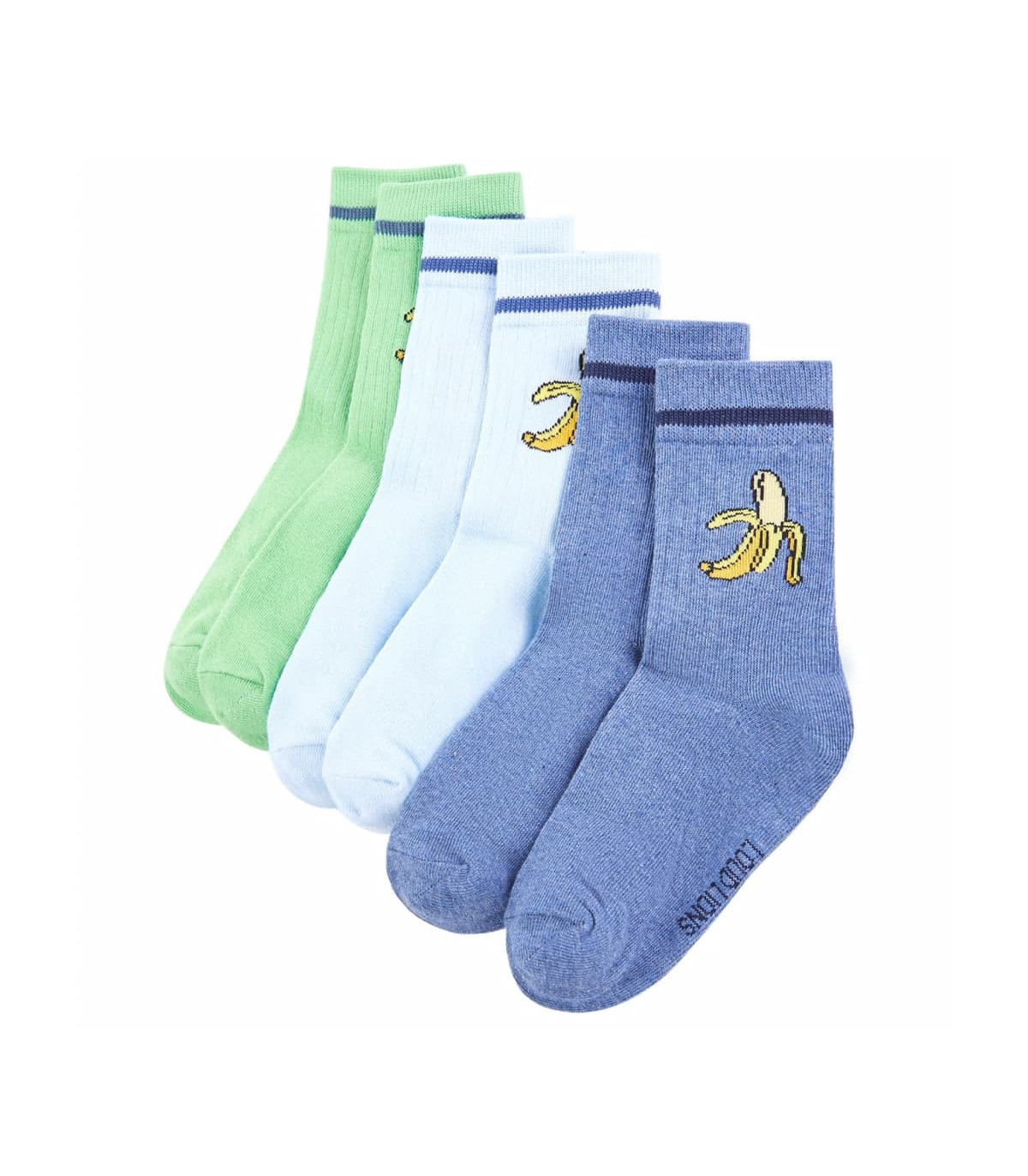 Our children's clothing line is all about affordable, high-quality, and durable everyday wear for kids aged 1.5 to 10. Our range includes jackets, sweaters, shirts, and many more, with a variety in style, size, and colour. Following the high quality standard in the market, we are using high-grade materials and advanced manufacturing techniques. These kids’ socks have coloured stripe and a peeled banana print. They have reinforced heels and toes to last longer. Made from cotton-rich fabric, the children’s socks keep feet warm and dry. Good to know: The size chart in the picture provides measurements for kids aged 1.5 to 10. You can easily find the right fit for your child.