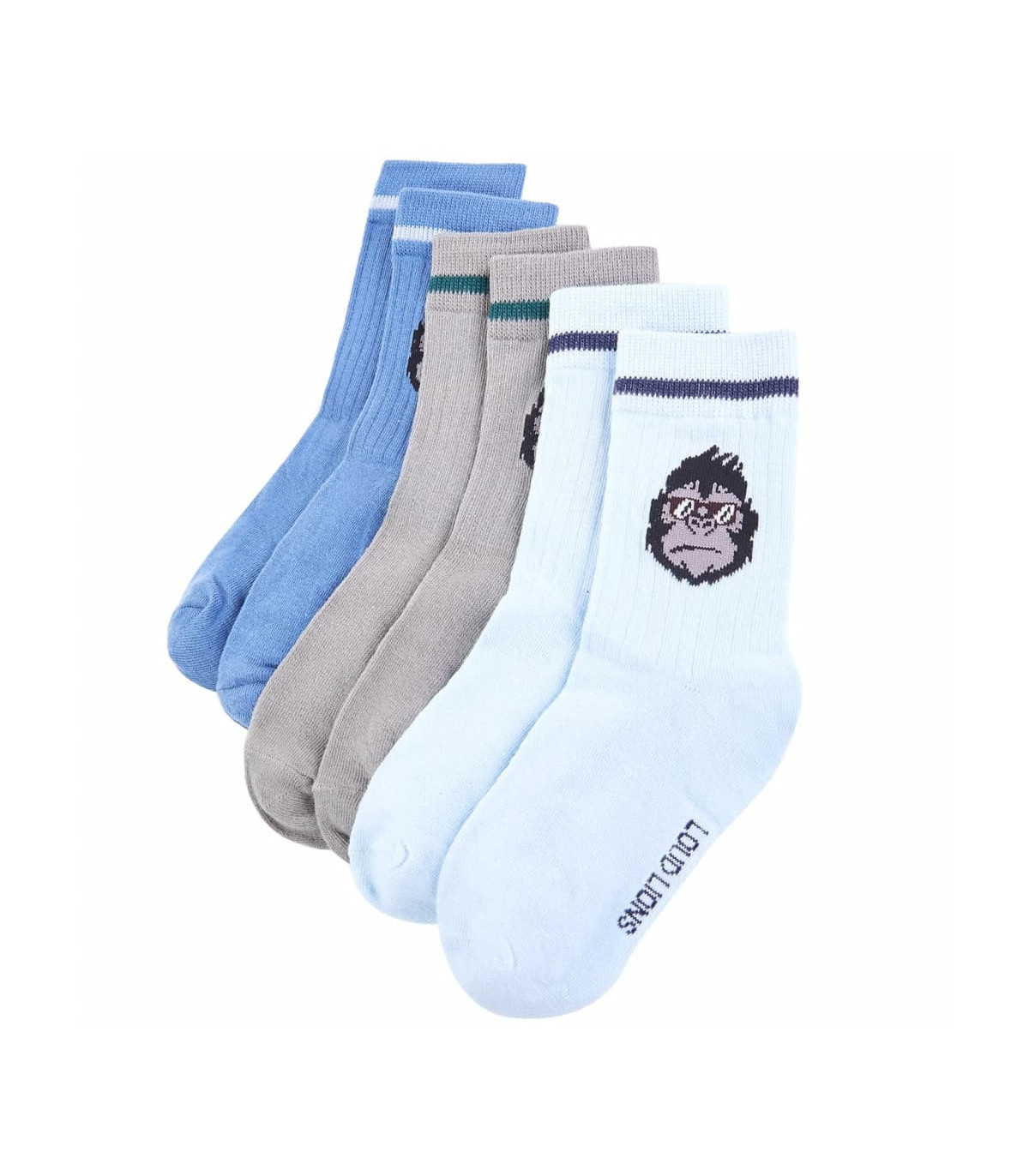 Our children's clothing line is all about affordable, high-quality, and durable everyday wear for kids aged 1.5 to 10. Our range includes jackets, sweaters, shirts, and many more, with a variety in style, size, and colour. Following the high quality standard in the market, we are using high-grade materials and advanced manufacturing techniques. These kids’ socks have coloured stripe and a gorilla print. They have reinforced heels and toes to last longer. Made from cotton-rich fabric, the children’s socks keep feet warm and dry. Good to know: The size chart in the picture provides measurements for kids aged 1.5 to 10. You can easily find the right fit for your child.