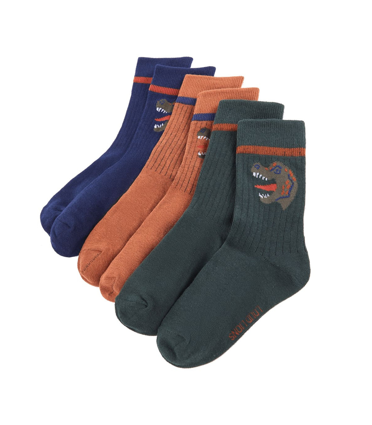 Our children's clothing line is all about affordable, high-quality, and durable everyday wear for kids aged 1.5 to 10. Our range includes jackets, sweaters, shirts, and many more, with a variety in style, size, and colour. Following the high quality standard in the market, we are using high-grade materials and advanced manufacturing techniques. These kids’ socks have coloured stripe and a dog print. They have reinforced heels and toes to last longer. Made from cotton-rich fabric, the children’s socks keep feet warm and dry. Good to know: The size chart in the picture provides measurements for kids aged 1.5 to 10. You can easily find the right fit for your child.