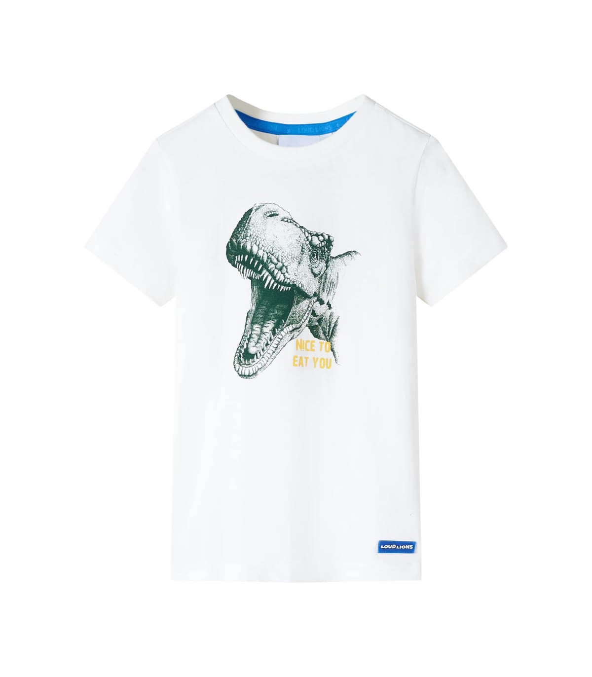 Our children's clothing line is all about affordable, high-quality, and durable everyday wear for kids aged 1.5 to 10. Our range includes jackets, sweaters, shirts, and many more, with a variety in style, size, and colour. Following the high-quality standard in the market, we are using high-grade materials and advanced manufacturing techniques. This kids' T-shirt has short sleeves, a round neckline, and a straight model. The children's T-shirt features a big dinosaur. The kids' short sleeved T-shirt is made of 100% cotton for a soft and comfortable touch. Good to know: The size chart in the picture provides measurements for kids aged 1.5 to 10, covering the height, chest, waist, and hip. You can easily find the right fit for your child.