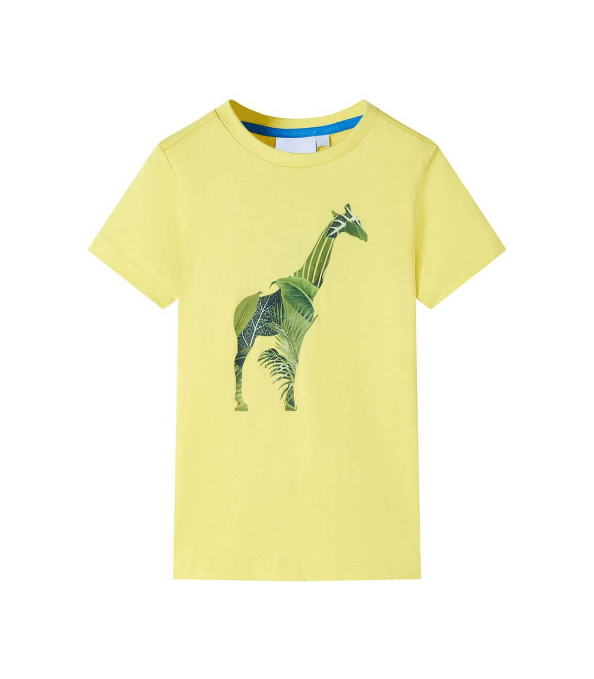 Our children's clothing line is all about affordable, high-quality, and durable everyday wear for kids aged 1,5 to 10. Our range includes jackets, sweaters, shirts, and many more, with a variety in style, size, and colour. Following the high-quality standard in the market, we are using high-grade materials and advanced manufacturing techniques. This kids' T-shirt has short sleeves, a round neckline, and a straight model. The children's T-shirt features a big giraffe print. The kids' short sleeved T-shirt is made of 100% cotton for a soft and comfortable touch. Good to know: The size chart in the picture provides measurements for kids aged 1,5 to 10, covering the height, chest, waist, and hip. You can easily find the right fit for your child.