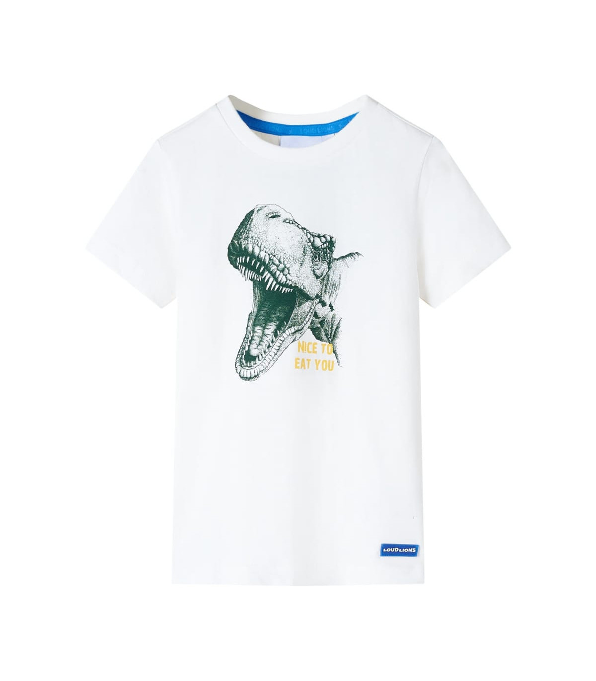 Our children's clothing line is all about affordable, high-quality, and durable everyday wear for kids aged 1.5 to 10. Our range includes jackets, sweaters, shirts, and many more, with a variety in style, size, and colour. Following the high-quality standard in the market, we are using high-grade materials and advanced manufacturing techniques. This kids' T-shirt has short sleeves, a round neckline, and a straight model. The children's T-shirt features a big dinosaur. The kids' short sleeved T-shirt is made of 100% cotton for a soft and comfortable touch. Good to know: The size chart in the picture provides measurements for kids aged 1.5 to 10, covering the height, chest, waist, and hip. You can easily find the right fit for your child.