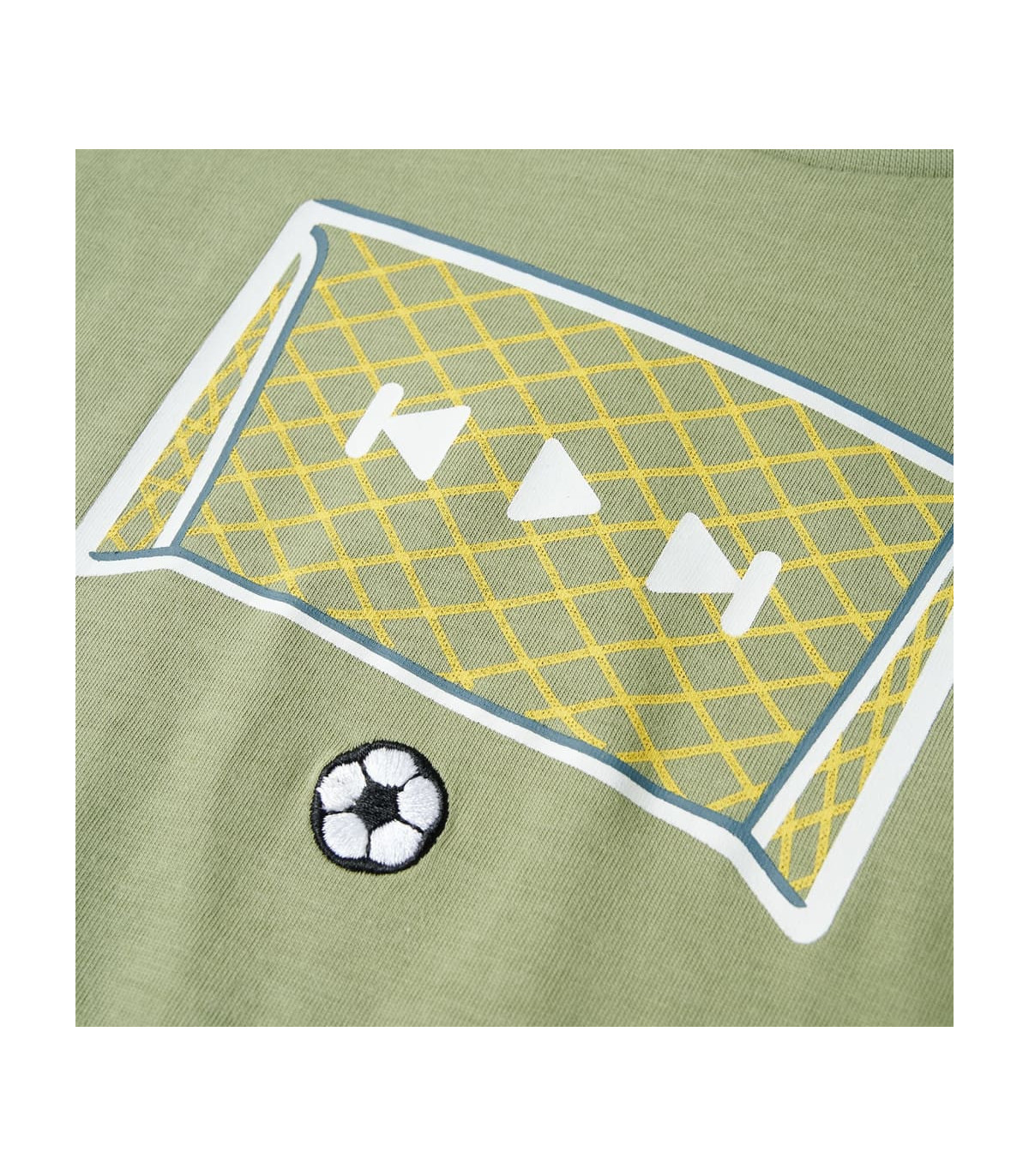 Our children's clothing line is all about affordable, high-quality, and durable everyday wear for kids aged 1,5 to 10. Our range includes jackets, sweaters, shirts, and many more, with a variety in style, size, and colour. Following the high-quality standard in the market, we are using high-grade materials and advanced manufacturing techniques. This kids' T-shirt has short sleeves, a round neckline, and a straight model. The children's T-shirt features a printed football goal and an embroidered football. The kids' short sleeved T-shirt is made of 100% cotton for a soft and comfortable touch. Good to know: The size chart in the picture provides measurements for kids aged 1,5 to 10, covering the height, chest, waist, and hip. You can easily find the right fit for your child.