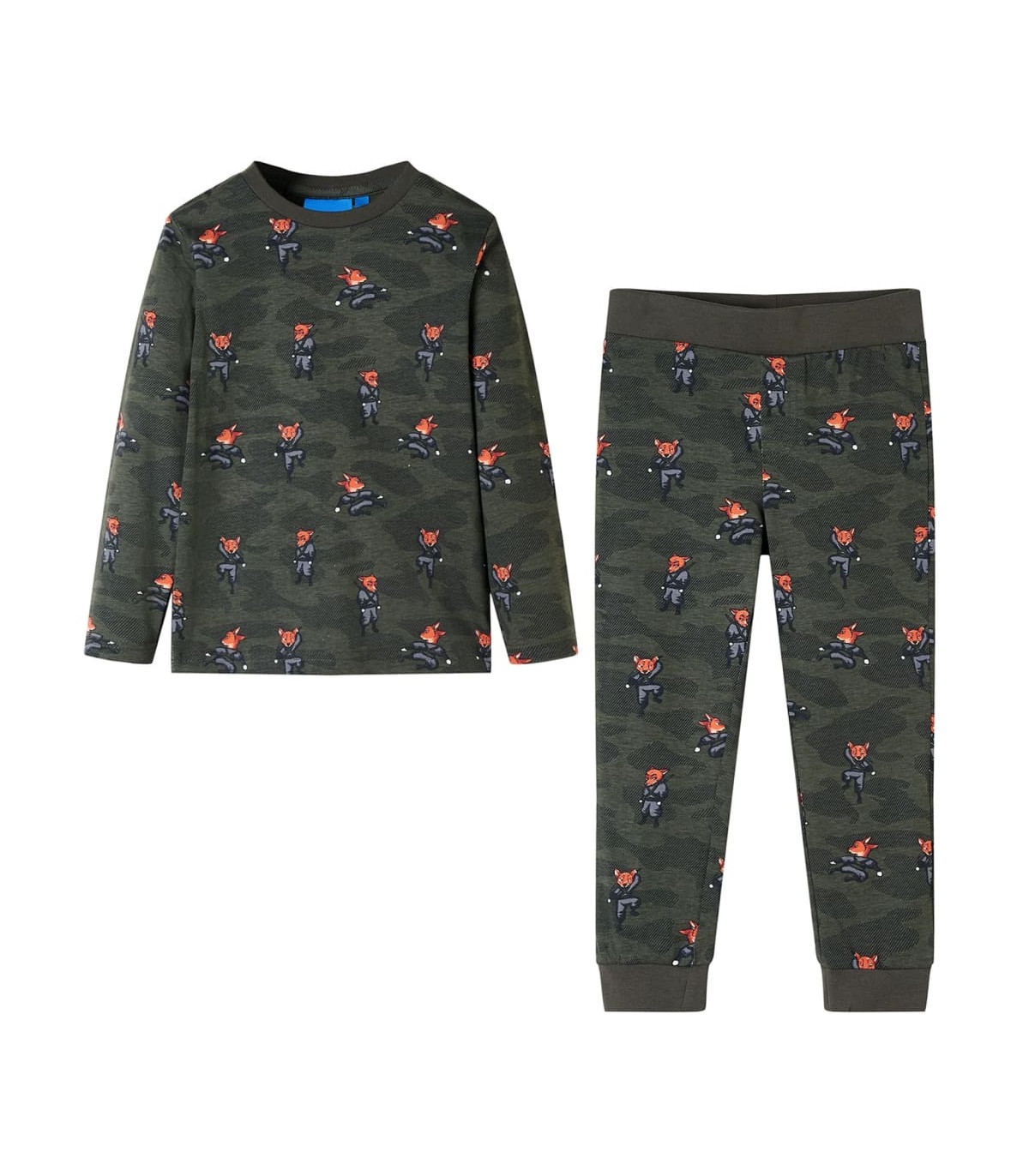 Our children's clothing line is all about affordable, high-quality, and durable everyday wear for kids aged 1.5 to 10. Our range includes jackets, sweaters, shirts, and many more, with a variety in style, size, and colour. Following the high-quality standard in the market, we are using high-grade materials and advanced manufacturing techniques. This pair of kids' pyjamas with long sleeves has a round neckline, elasticated waistband, and a regular fit. The children's pyjamas feature an all-over fox ninja print. The kids' loungewear is made from 100% cotton for comfort and breathability. Good to know: The size chart in the picture provides measurements for kids aged 1.5 to 10, covering the height, chest, waist, and hip. You can easily find the right fit for your child.