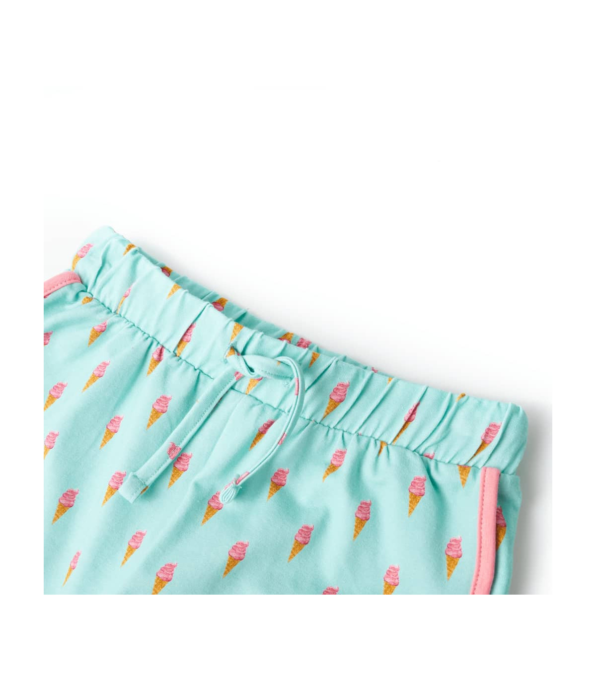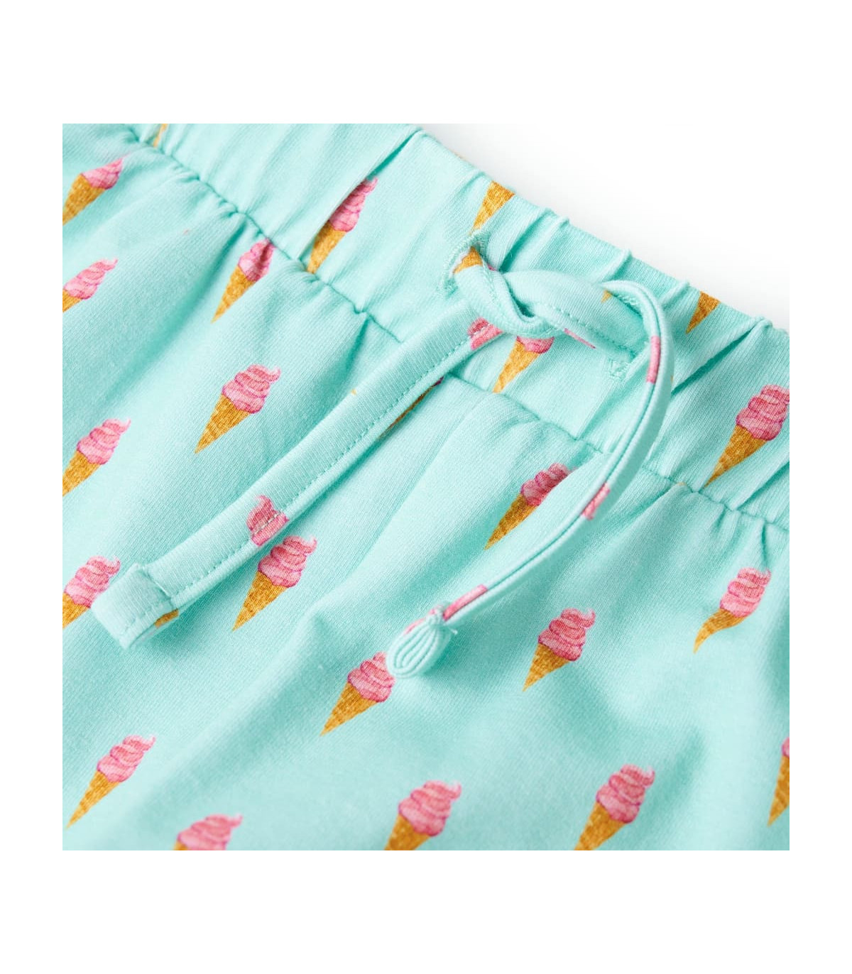 Our children's clothing line is all about affordable, high-quality, and durable everyday wear for kids aged 1,5 to 10. Our range includes jackets, sweaters, shirts, and many more, with a variety in style, size, and colour. Following the high-quality standard in the market, we are using high-grade materials and advanced manufacturing techniques. This pair of kids' shorts has an elastic drawstring waistband and two back welt pockets. The children's shorts are printed with ice cream all over. The shorts for kids are made from soft material that includes 92% cotton and 8% elastane for comfort and breathability. Good to know: This size chart in the picture provides measurements for kids aged 1,5 to 10, covering the height, chest, waist, and hip. You can easily find the right fit for your child.