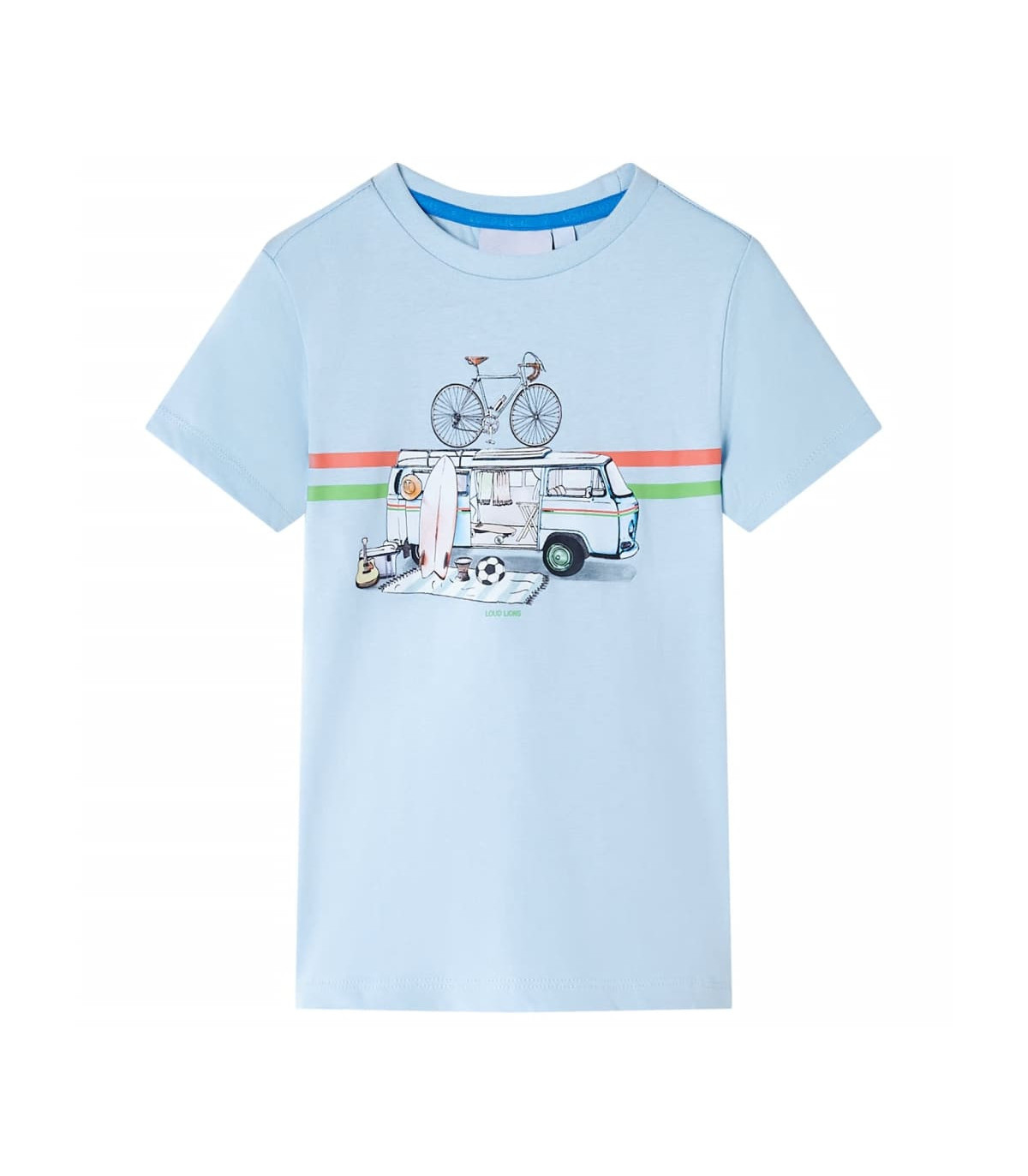 Our children’s clothing line is all about affordable, high-quality, and durable everyday wear for kids aged 1,5 to 10. Our range includes jackets, sweaters, shirts, and many more, with a variety in style, size, and colour. Following the high-quality standard in the market, we are using high-grade materials and advanced manufacturing techniques. This kids' T-shirt has short sleeves, a round neckline, and a straight model. The children's T-shirt features a bus and other patterns on the front. The T-shirt for kids is made of 100% cotton for a soft and comfortable touch. Good to know: This size chart in the picture provides measurements for kids aged 1,5 to 10, covering the height, chest, waist, and hip. You can easily find the right fit for your child.