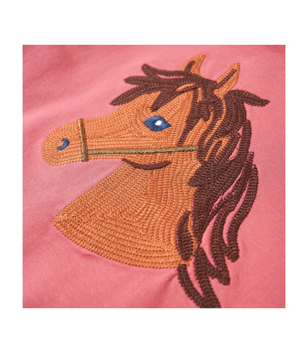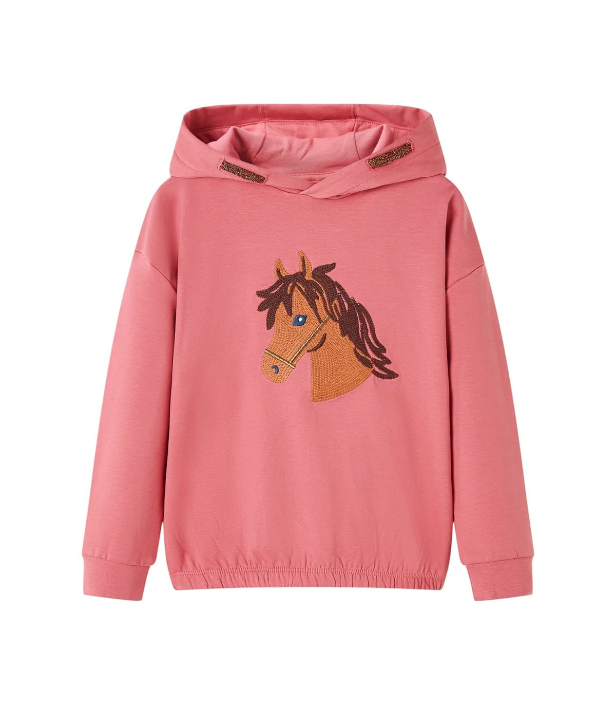 Our children’s clothing line is all about affordable, high-quality, and durable everyday wear for kids aged 1,5 to 10. Our range includes jackets, sweaters, shirts, and many more, with a variety in style, size, and colour. Following the high-quality standard in the market, we are using high-grade materials and advanced manufacturing techniques. This kids' hooded sweatshirt has long sleeves and an elastic hem. The pull over hoodie features a horse on the front. The children's hoodie sweatshirt is made of cotton and elastane for a soft and comfortable touch. Good to know: This size chart in the picture provides measurements for kids aged 1,5 to 10, covering the height, chest, waist, and hip. You can easily find the right fit for your child.