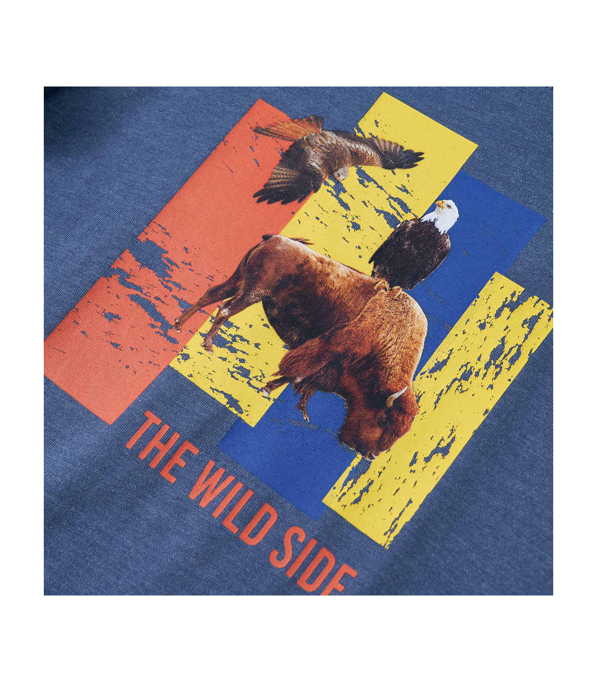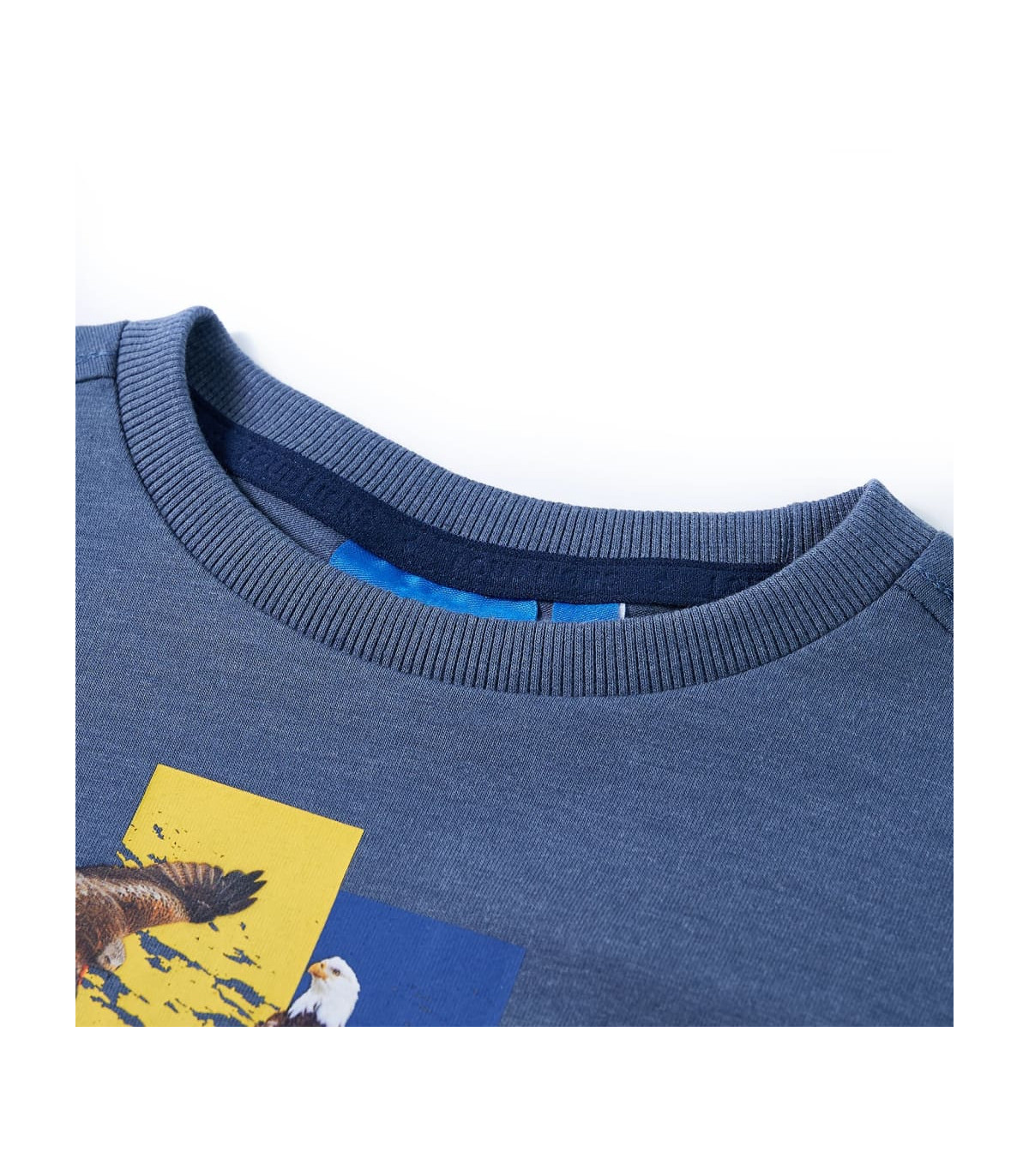 Our children's clothing line is all about affordable, high-quality, and durable everyday wear for kids aged 1,5 to 10. Our range includes jackets, sweaters, shirts, and many more, with a variety in style, size, and colour. Following the high-quality standard in the market, we are using high-grade materials and advanced manufacturing techniques. This kids' T-shirt has long sleeves, a round neck with a rib-knit edge, and a straight model. This children's T-shirt features an ox and eagles. The children's long sleeve T-shirt is made of 60% cotton and 40% polyester, which is treated with a silicon and enzyme wash for a soft and comfortable touch. Good to know: The size chart in the picture provides measurements for kids aged 1,5 to 10, covering the height, chest, waist, and hip. You can easily find the right fit for your child.