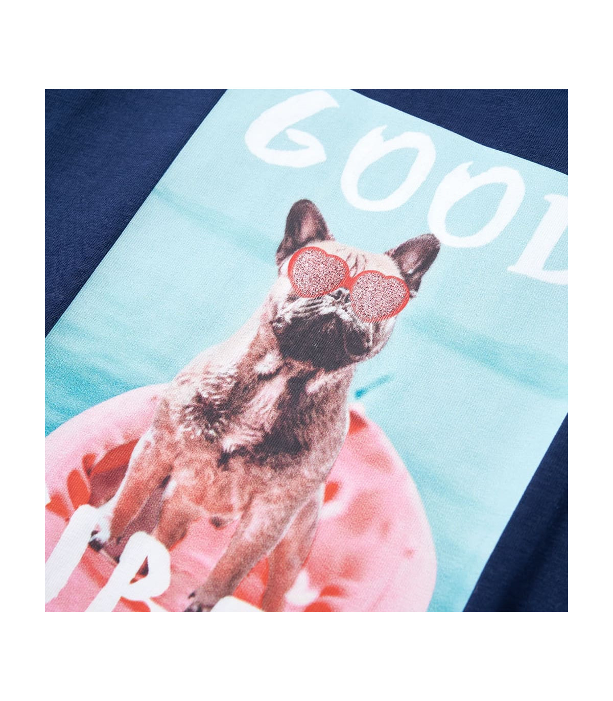 Our children's clothing line is all about affordable, high-quality, and durable everyday wear for kids aged 1,5 to 10. Our range includes jackets, sweaters, shirts, and many more, with a variety in style, size, and colour. Following the high-quality standard in the market, we are using high-grade materials and advanced manufacturing techniques. This kids' T-shirt has short sleeves, a round neckline, and a straight model. This blue T-shirt features a large brown dog with pink glittering heart glasses in a red boat. The children's short sleeve T-shirt is made from soft material with 95% cotton and 5% elastane, providing extra comfort and stretch. Good to know: The size chart in the picture provides measurements for kids aged 1,5 to 10, covering the height, chest, waist, and hip. You can easily find the right fit for your child.