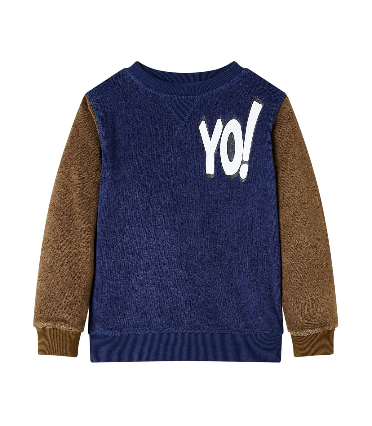Our children's clothing line is all about affordable, high-quality, and durable everyday wear for kids aged 1.5 to 10. Our range includes jackets, sweaters, shirts, and many more, with a variety in style, size, and colour. Following the high-quality standard in the market, we are using high-grade materials and advanced manufacturing techniques. This kids' sweatshirt has long sleeves, a round neck, and rib-knit edges at the cuffs, neckline, and bottom. This dark navy top for kids has a fun colour patchwork and features a "YO!" logo. The kids' top is made of 85% cotton and 15% polyester for comfort and breathability. Good to know: The size chart in the picture provides measurements for kids aged 1.5 to 10, covering the height, chest, waist, and hip. You can easily find the right fit for your child.