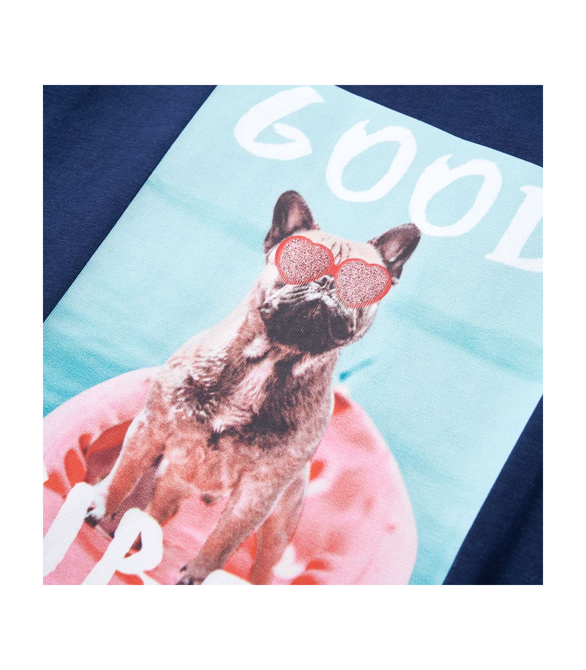 Our children's clothing line is all about affordable, high-quality, and durable everyday wear for kids aged 1,5 to 10. Our range includes jackets, sweaters, shirts, and many more, with a variety in style, size, and colour. Following the high-quality standard in the market, we are using high-grade materials and advanced manufacturing techniques. This kids' T-shirt has short sleeves, a round neckline, and a straight model. This blue T-shirt features a large brown dog with pink glittering heart glasses in a red boat. The children's short sleeve T-shirt is made from soft material with 95% cotton and 5% elastane, providing extra comfort and stretch. Good to know: The size chart in the picture provides measurements for kids aged 1,5 to 10, covering the height, chest, waist, and hip. You can easily find the right fit for your child.
