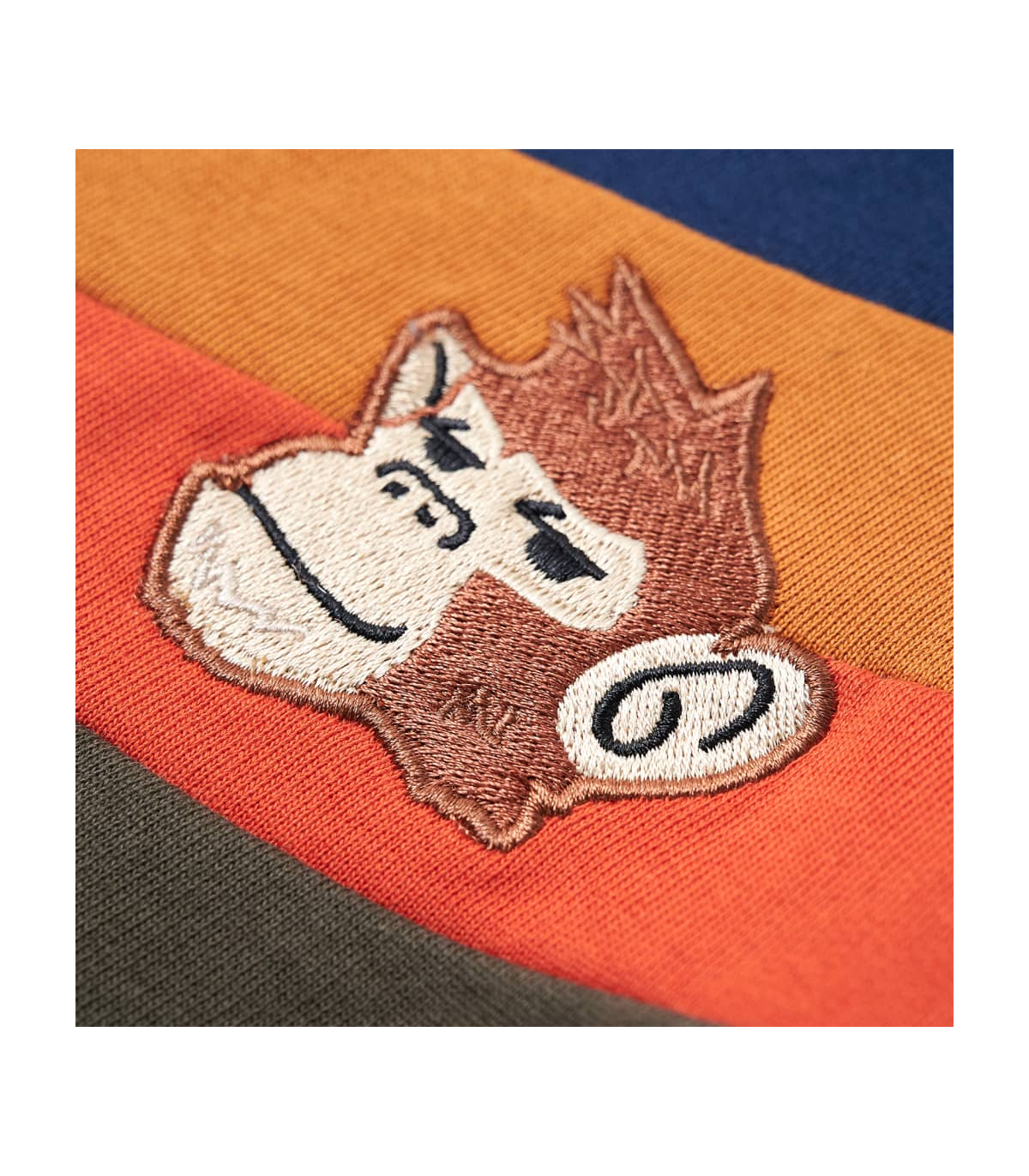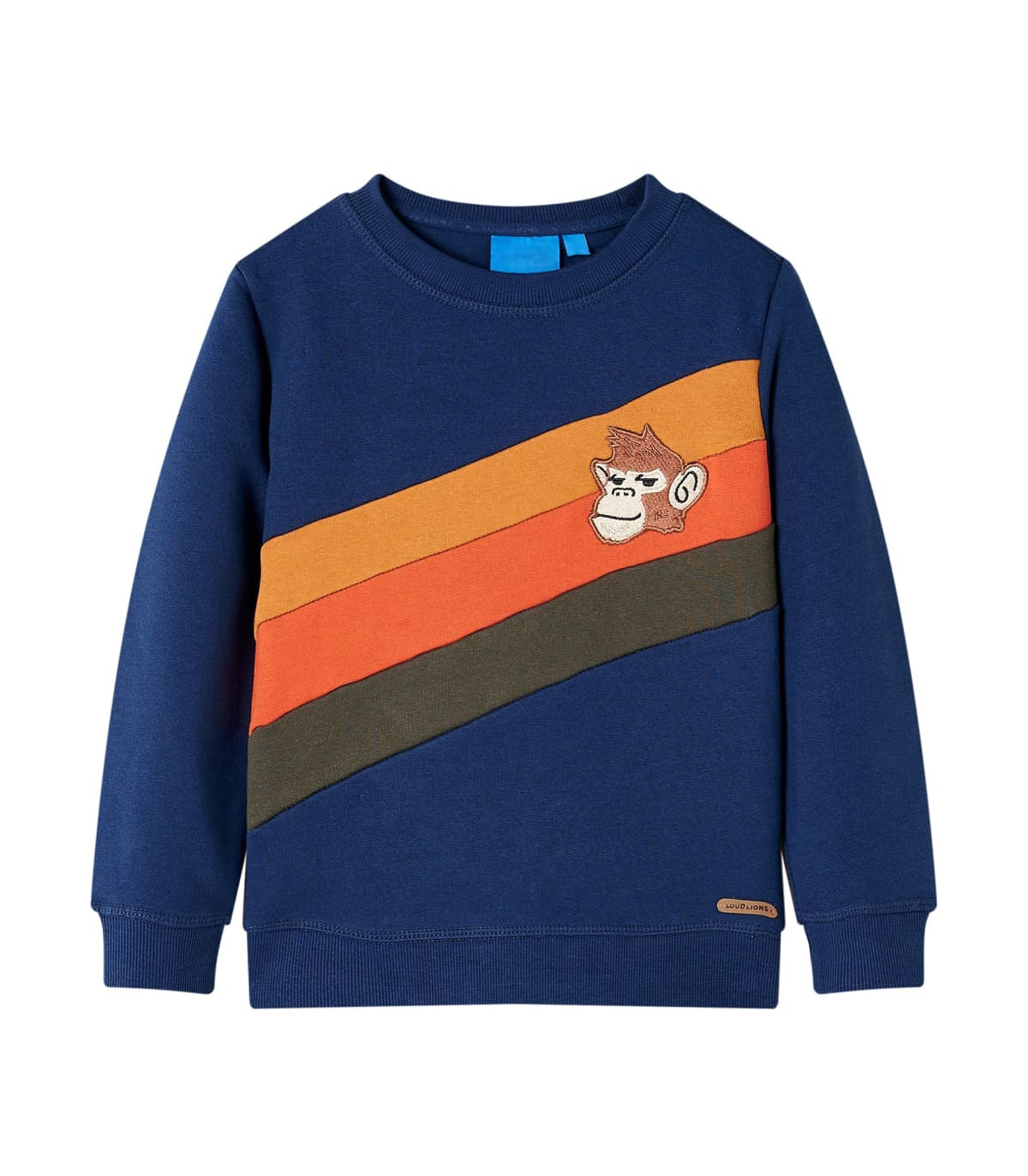 Our children's clothing line is all about affordable, high-quality, and durable everyday wear for kids aged 1.5 to 10. Our range includes jackets, sweaters, shirts, and many more, with a variety in style, size, and colour. Following the high-quality standard in the market, we are using high-grade materials and advanced manufacturing techniques. This kids' sweatshirt has long sleeves, a round neck, and rib-knit edges at the cuffs, neckline, and bottom. This sweatshirt features a monkey badge and 3 different coloured diagonal stripes on the front. The kids' top is made of 92% cotton and 8% polyester for softness and comfort. The soft fleece lining provides extra warmth for the children's sweatshirt. Good to know: The size chart in the picture provides measurements for kids aged 1.5 to 10, covering the height, chest, waist, and hip. You can easily find the right fit for your child.